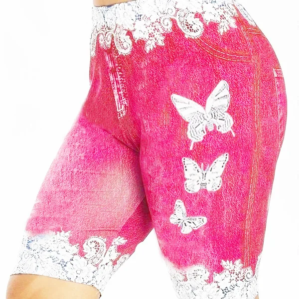 New Butterfly Printing Lace Leggings Hip Lifting Stretch High Waist Short Pants Women Gym Sport Workout
