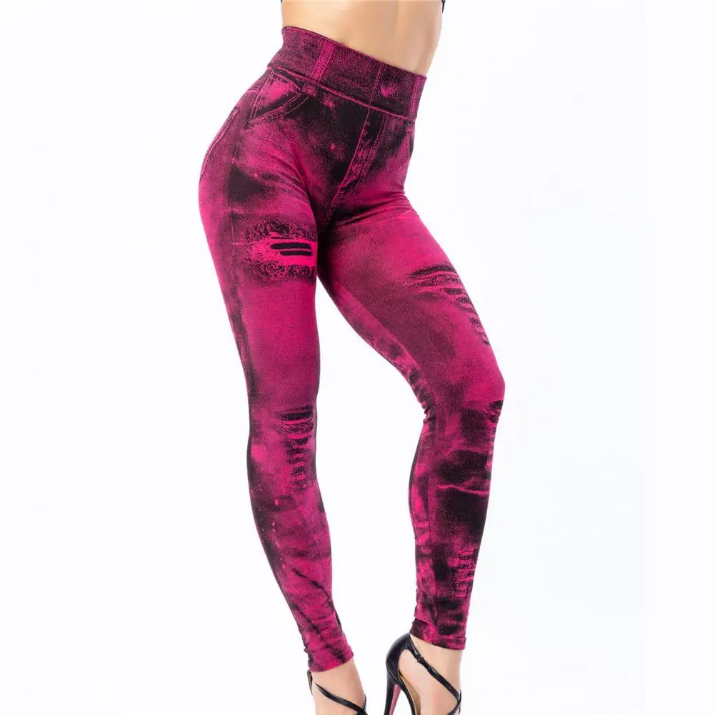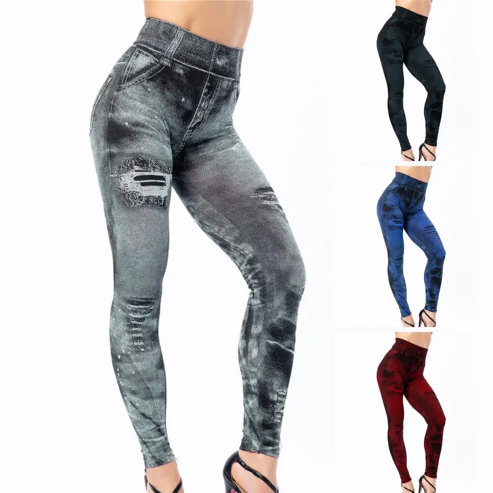 Yoga Pants Push Up Imitation Jeans Leggings Ripped Holes Print Women Fitness Leggings