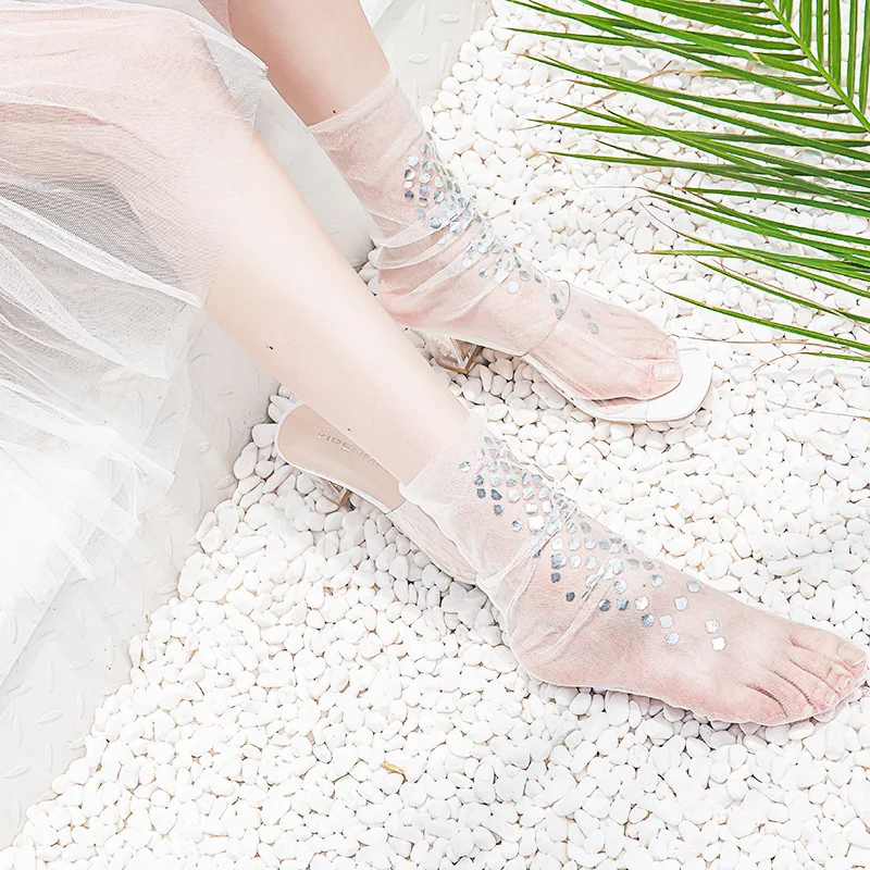 Sexy Lace Mesh Fishnet Socks Mixed Fiber Transparent Stretch Elasticity Ankle Net Yarn Thin Women Cool Socks 1pair=2pcs SLU02