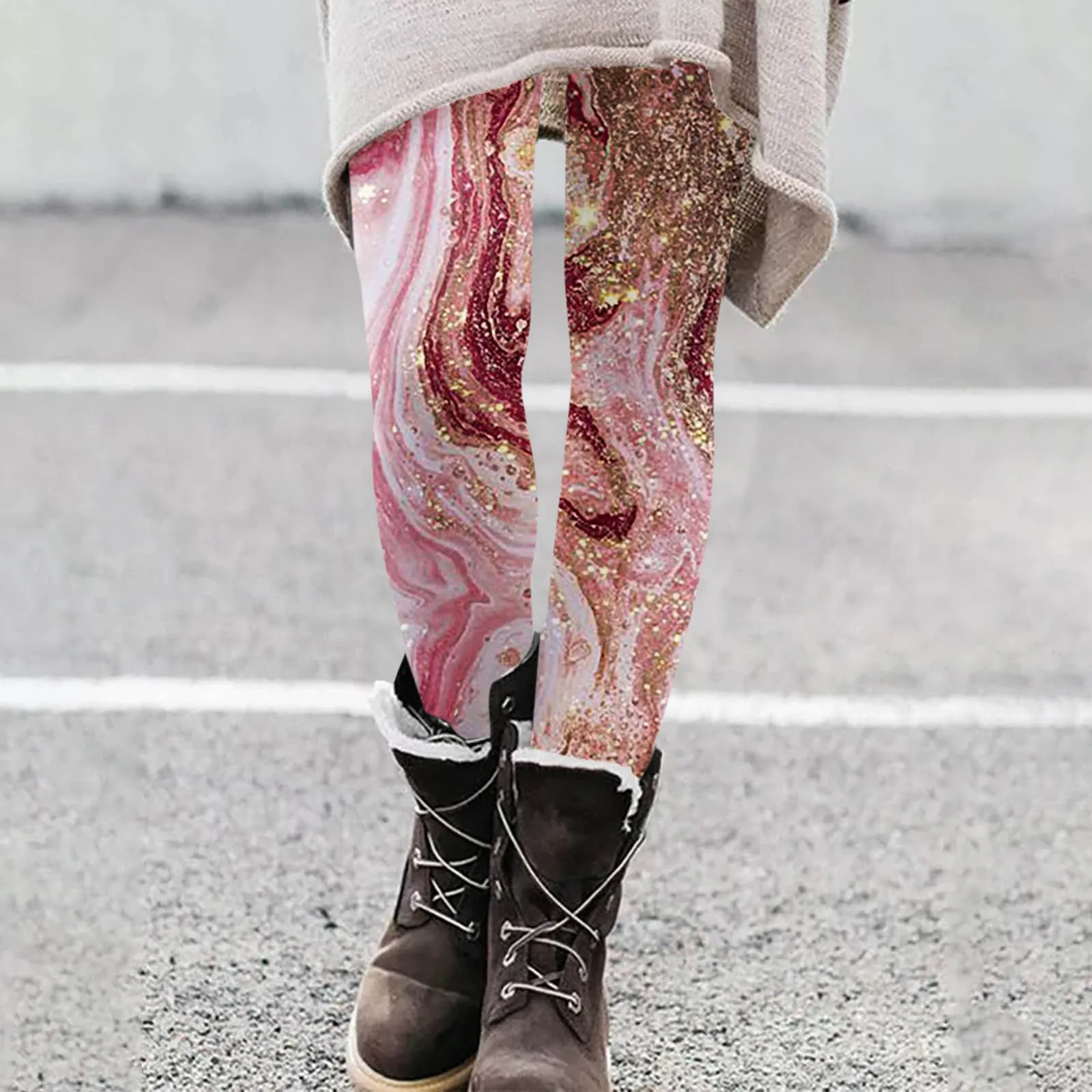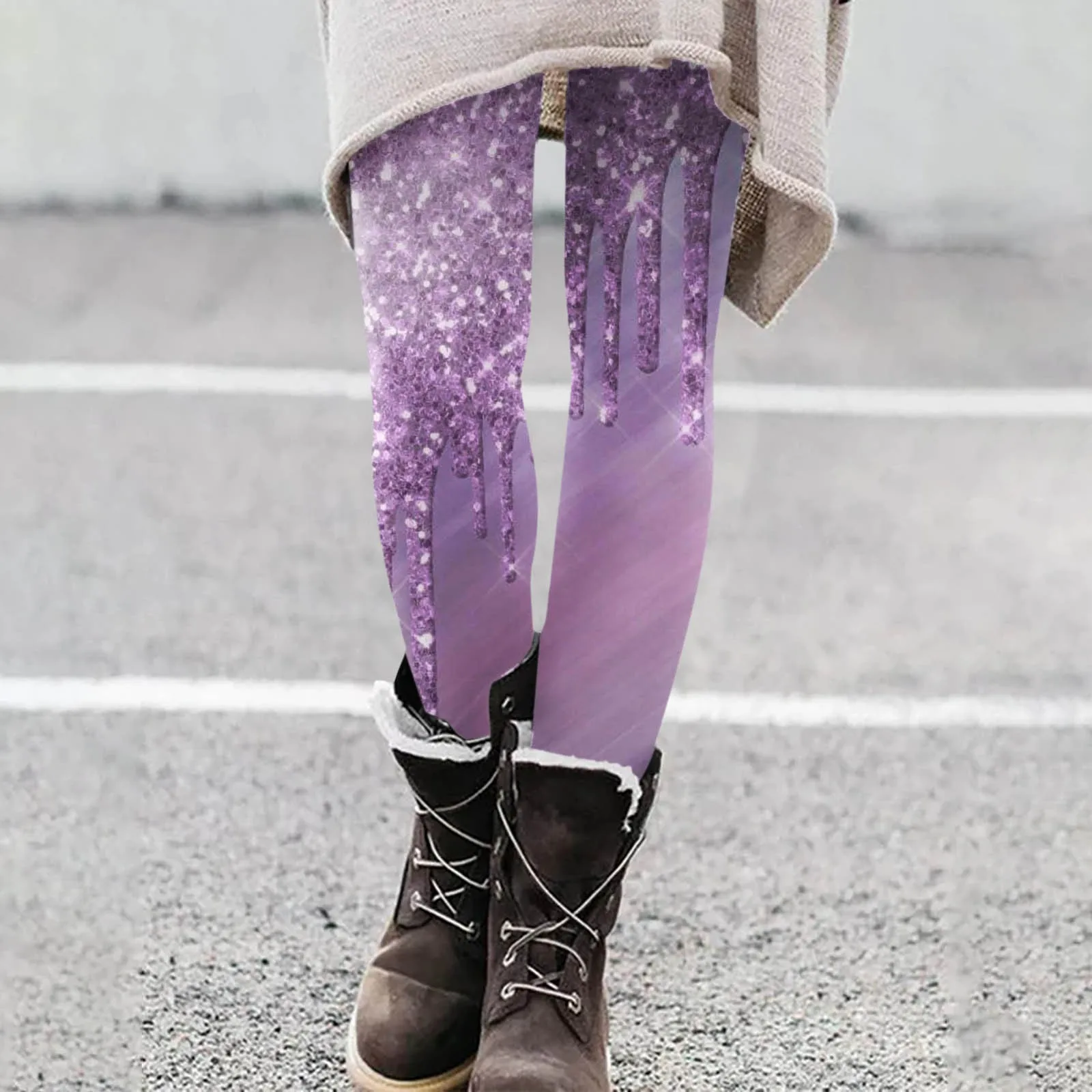 Women Fashion Sequin Print Trousers Haraujuku Casual Elastic Yoga Jogging Pant Winter Warm Women Skinny Legging Sweatpant Xmas