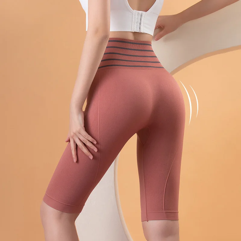 Women's High-Rise Tummy Control Yoga Fitness Leggings Solid Color Skinny Quick Drying Peach Butt Hip Lifting Five Point Tights