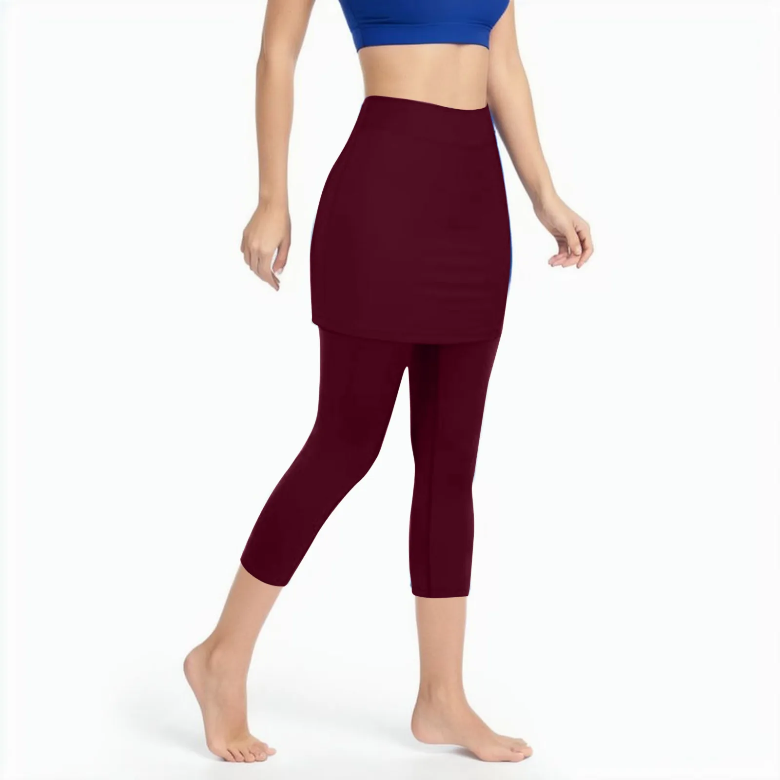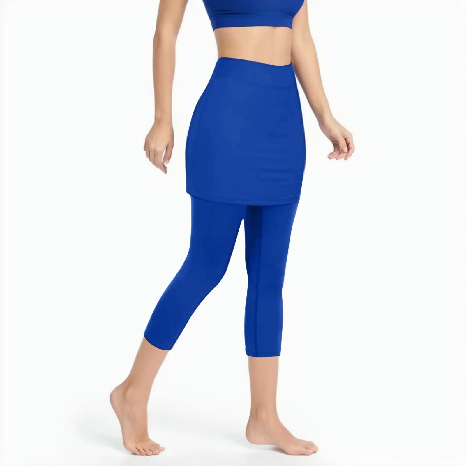 High Waist Leggings 2023 Running Pants Women Wrap Hip Side Pleated Skirt Fake Two Pieces Sexy Skirted Leggings Yoga Pants