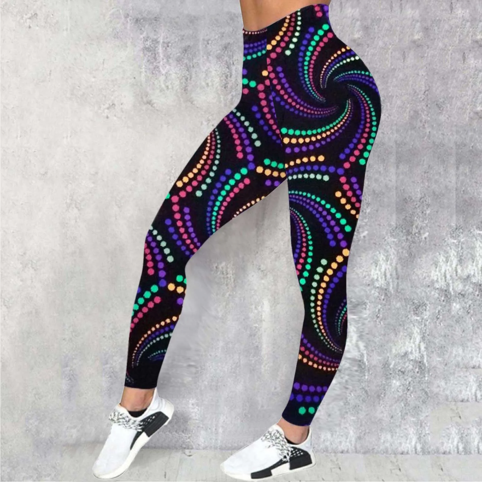 Women Casual Sports Yoga Pants Colorful Printed Fashion Leggings Workout Leggings for Women High Waist Half Half Pants