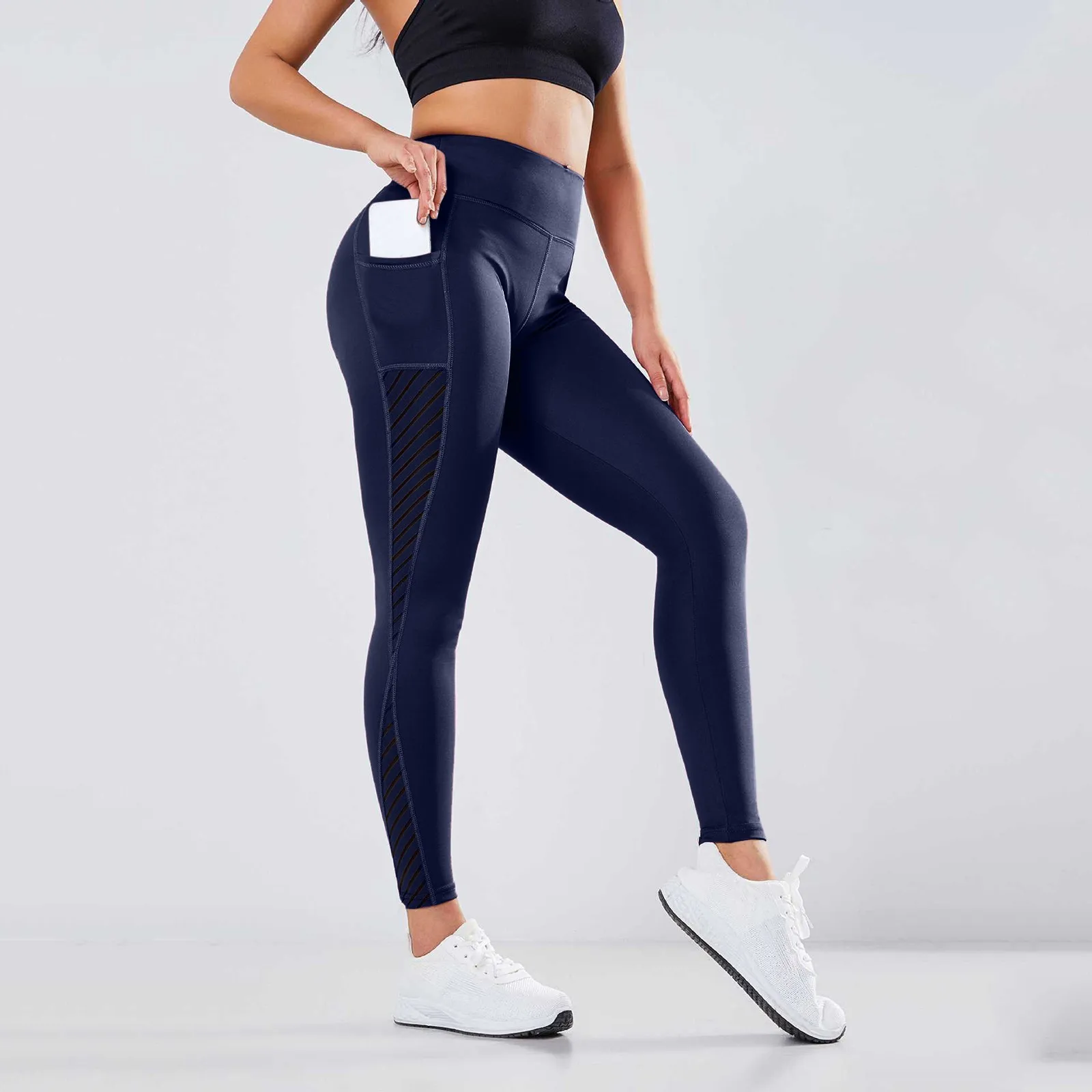 Women's Mesh Splicing Yoga Pants Hip Lift Waisted Exercise Pants Female Moisture Transferring Sweat Bottom Pants Ladies Pants