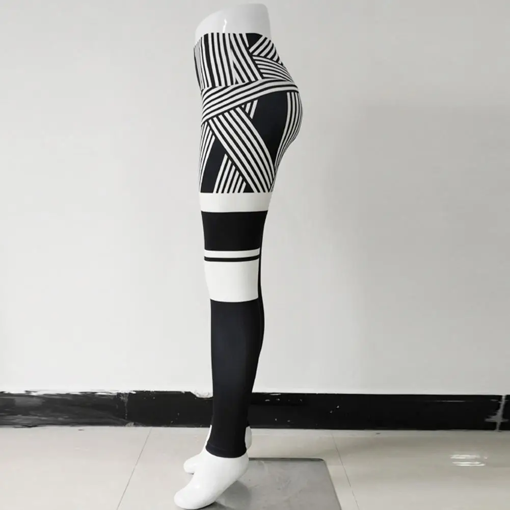 Women High Waist Leggings Digital Stripe Print Breathable Fitness Trousers Pants