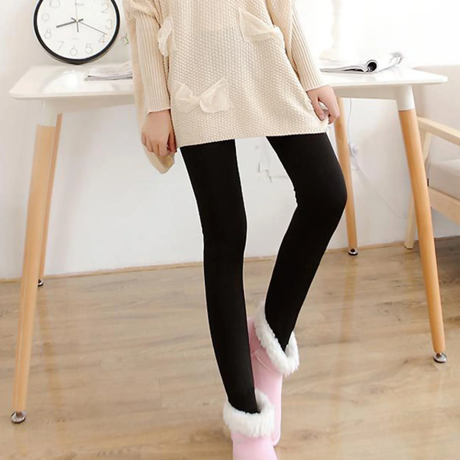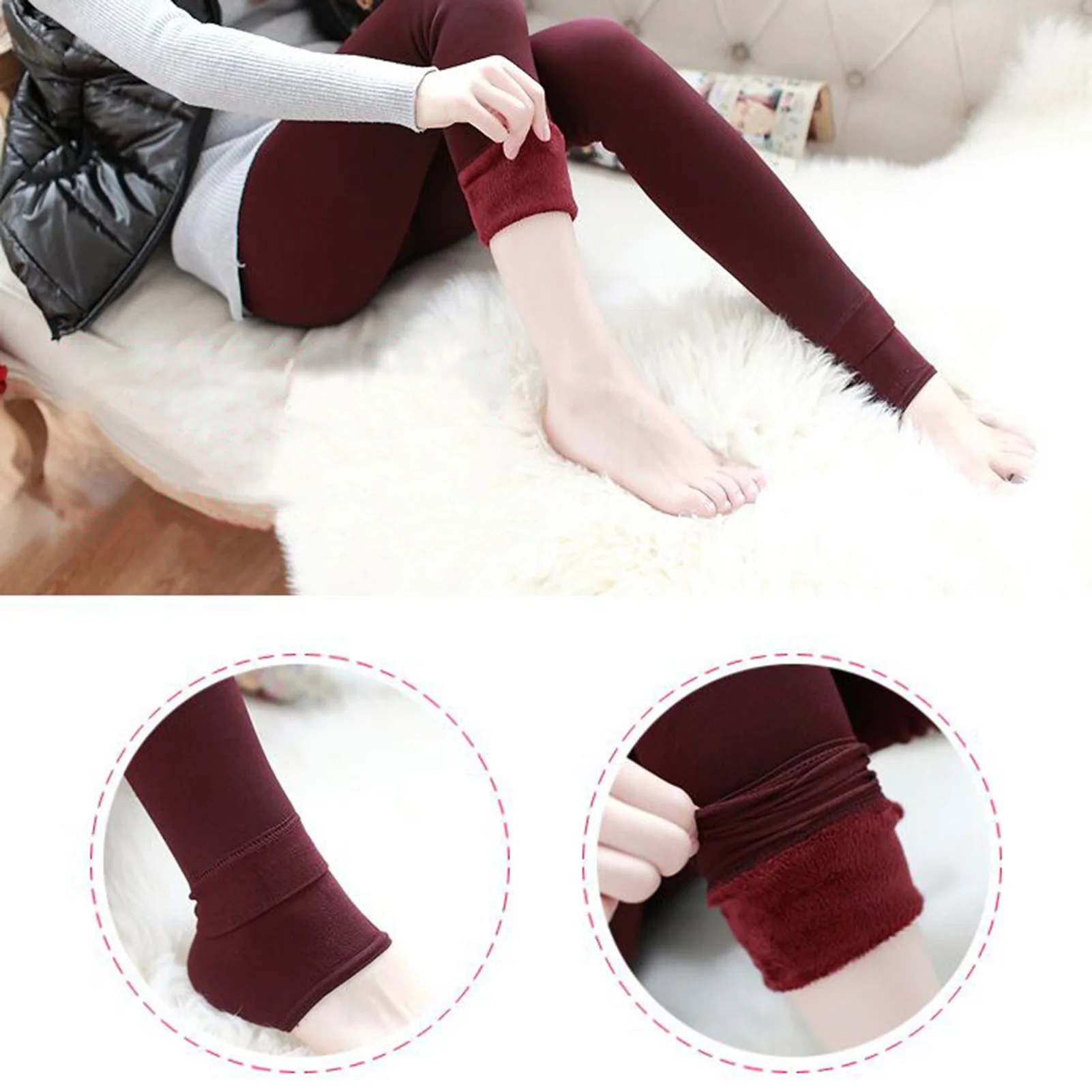 Fleece Leggings for Women Solid Color Regular Size Jean Look Jeggings Tights Stretchable Thermal Pants