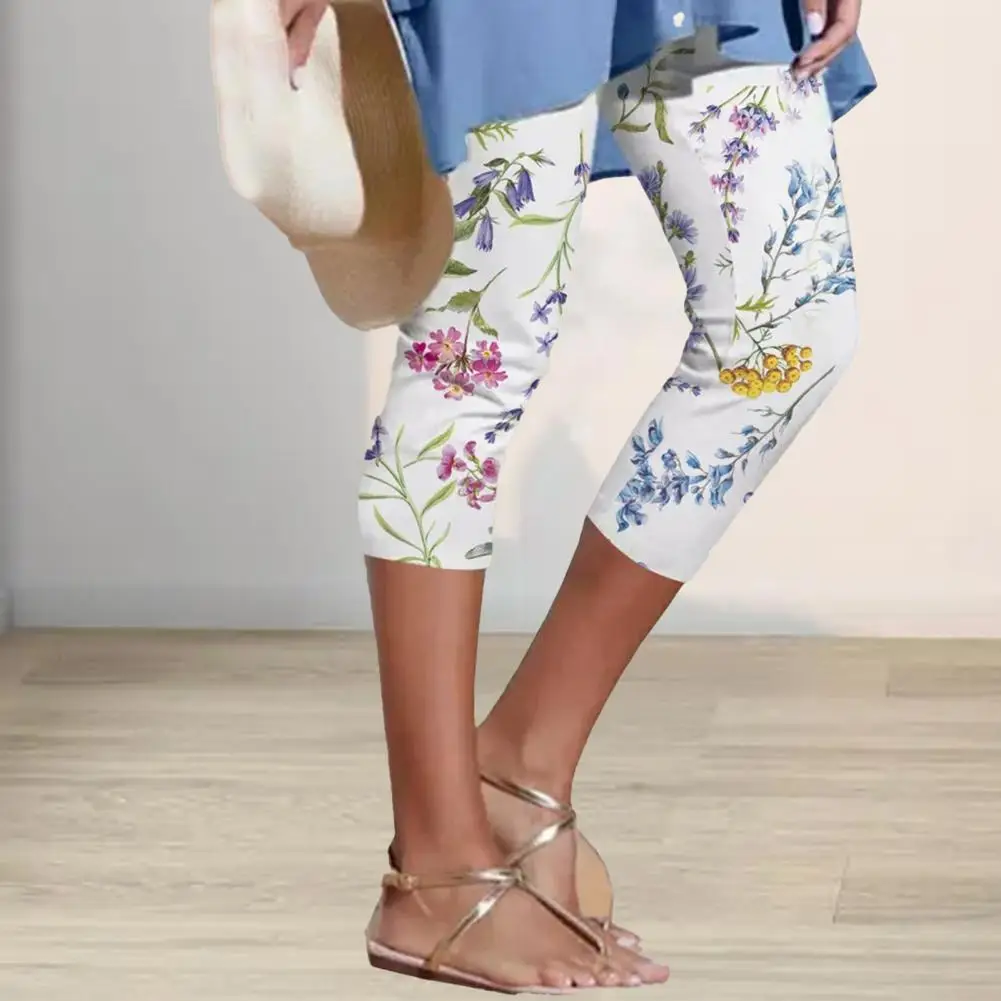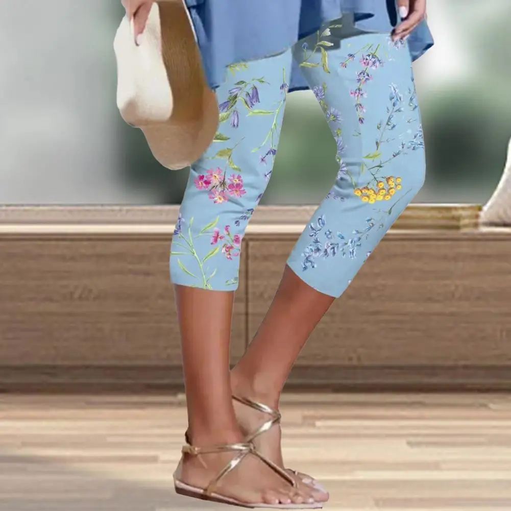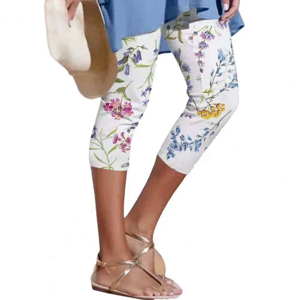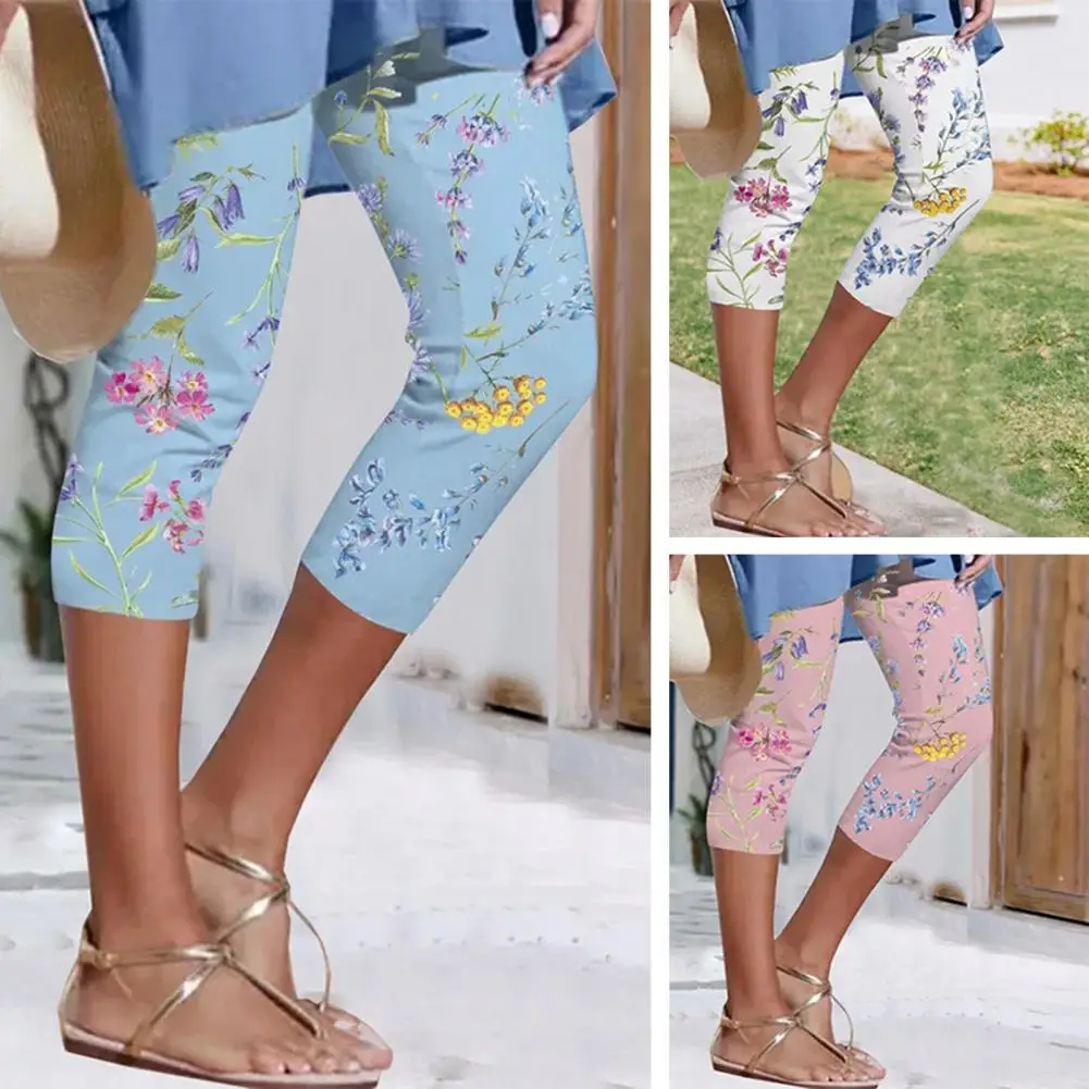 High-waist Elastic Waistband Fitness Leggings Slim Fit Hip Lifting Summer Digital Flower Printing Cropped Pants Streetwear Short