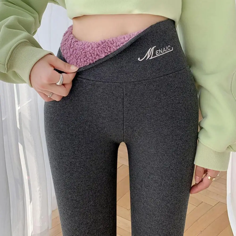 Comfortable Long Trousers Winter Women's High Waist Leggings Elastic Skinny Pants with Thick Fleece Lining for Cold Resistance