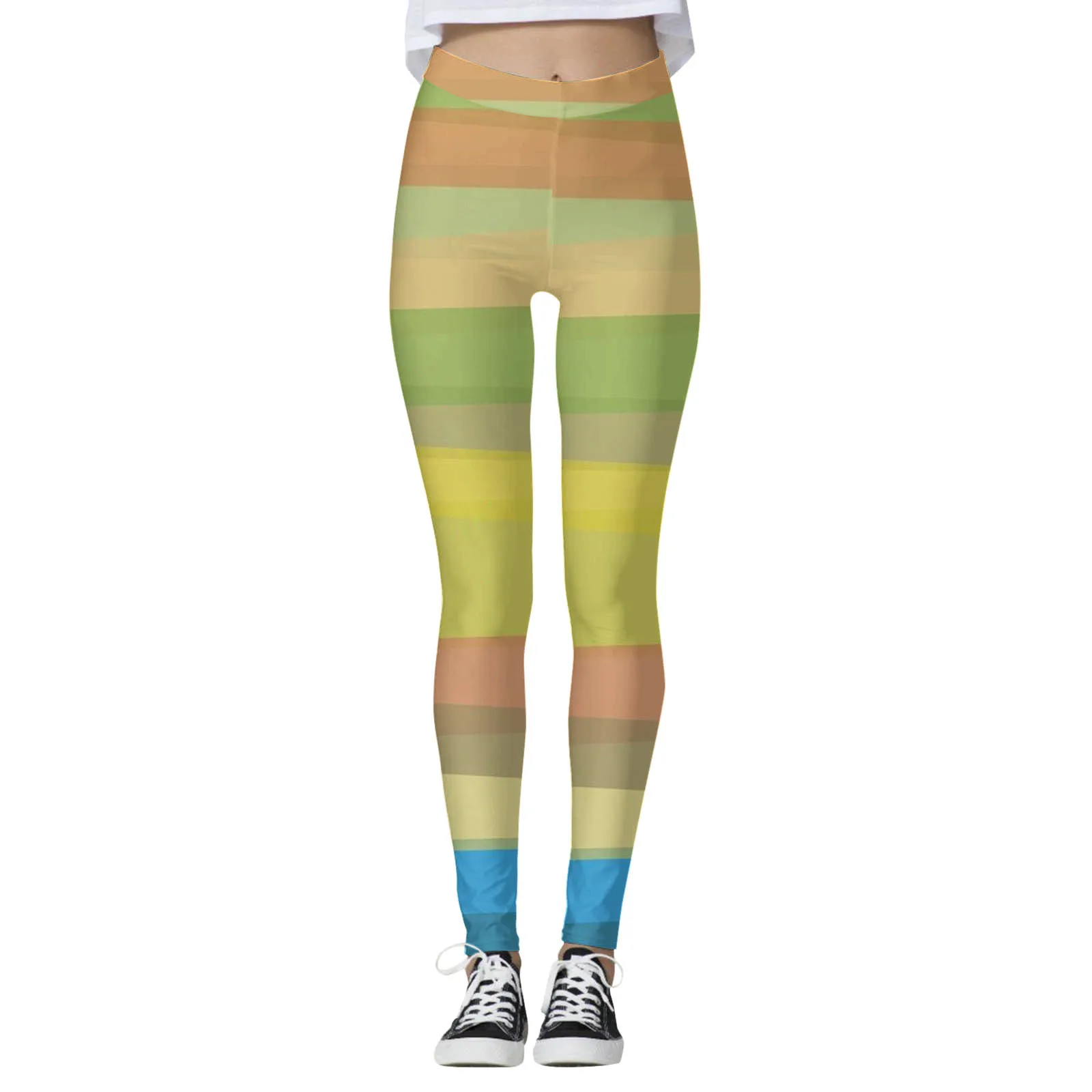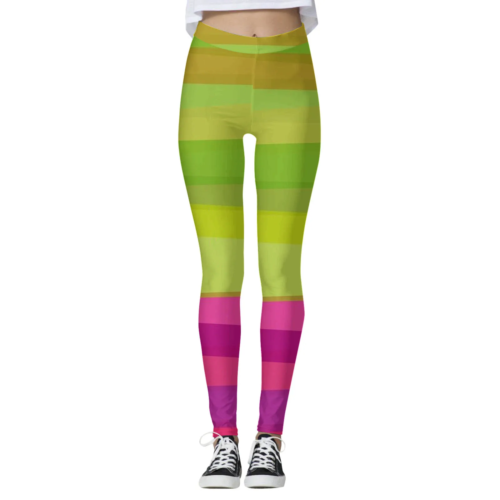 Mixed Colors Stripe Leggings Women Colorful Sexy Elastic High Waist Leggings Pants Slim Fitness Spring Summer Pencil Leggings