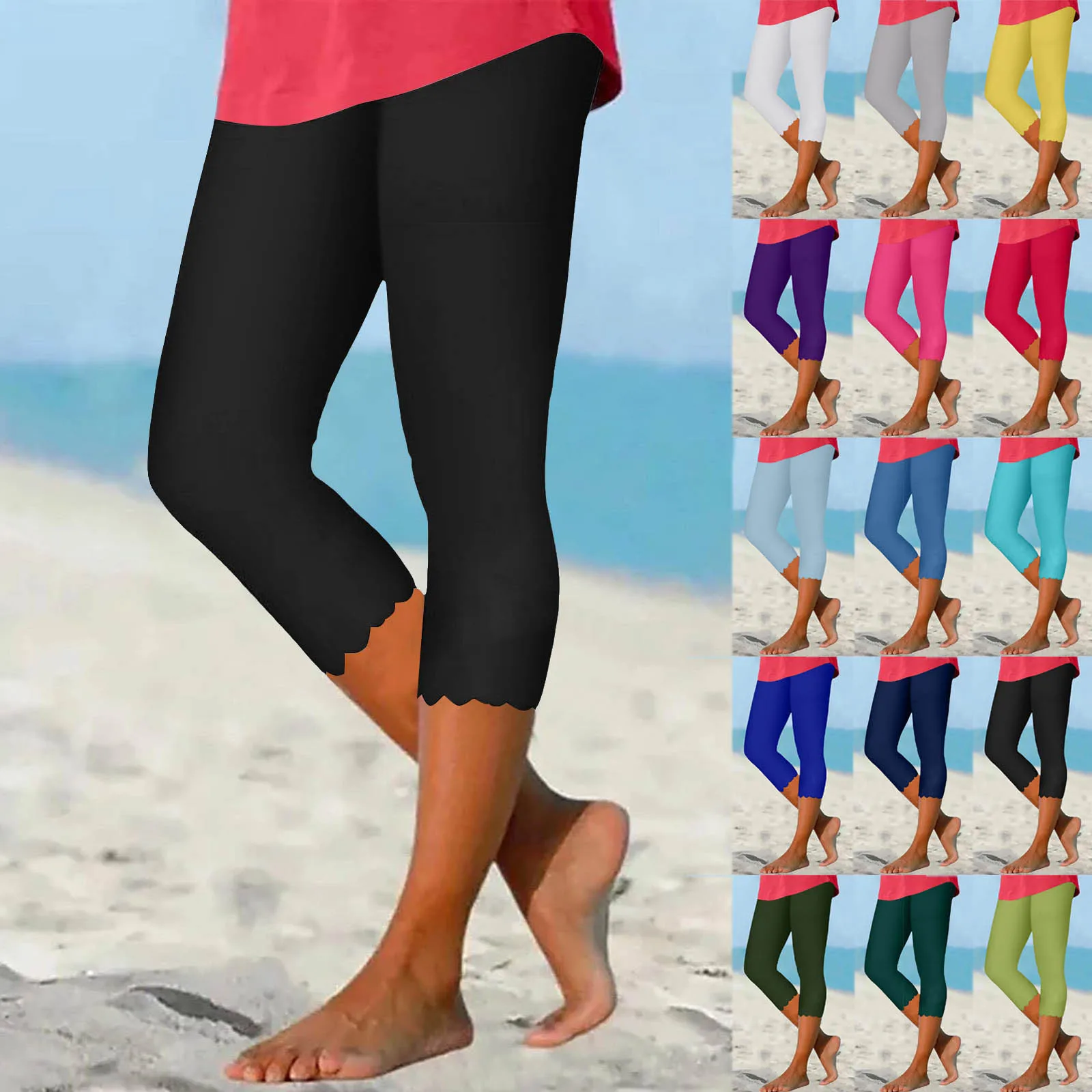 Crazy Yoga Women Solid Color Cropped Pants Yoga High Waist Leggings Summer Women Deer Leggings for Girls