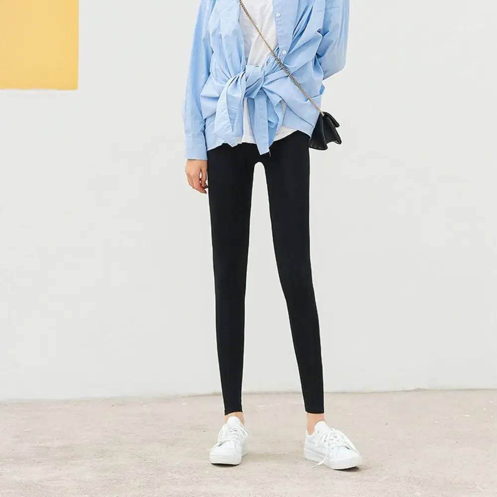 Thin Women Leggings All Match Solid Color High Waist Yoga Pants Stretch Pants Abdominal Tightening Slim Stretch Cropped Pants
