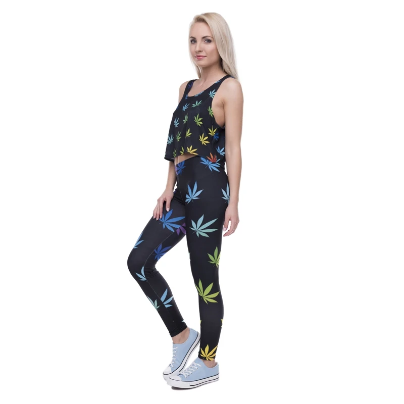 DeanFire Super Soft Stretchy Color Weed Print Fitness Leggings Sexy Silm Legins High Waist Trouser Women Pants