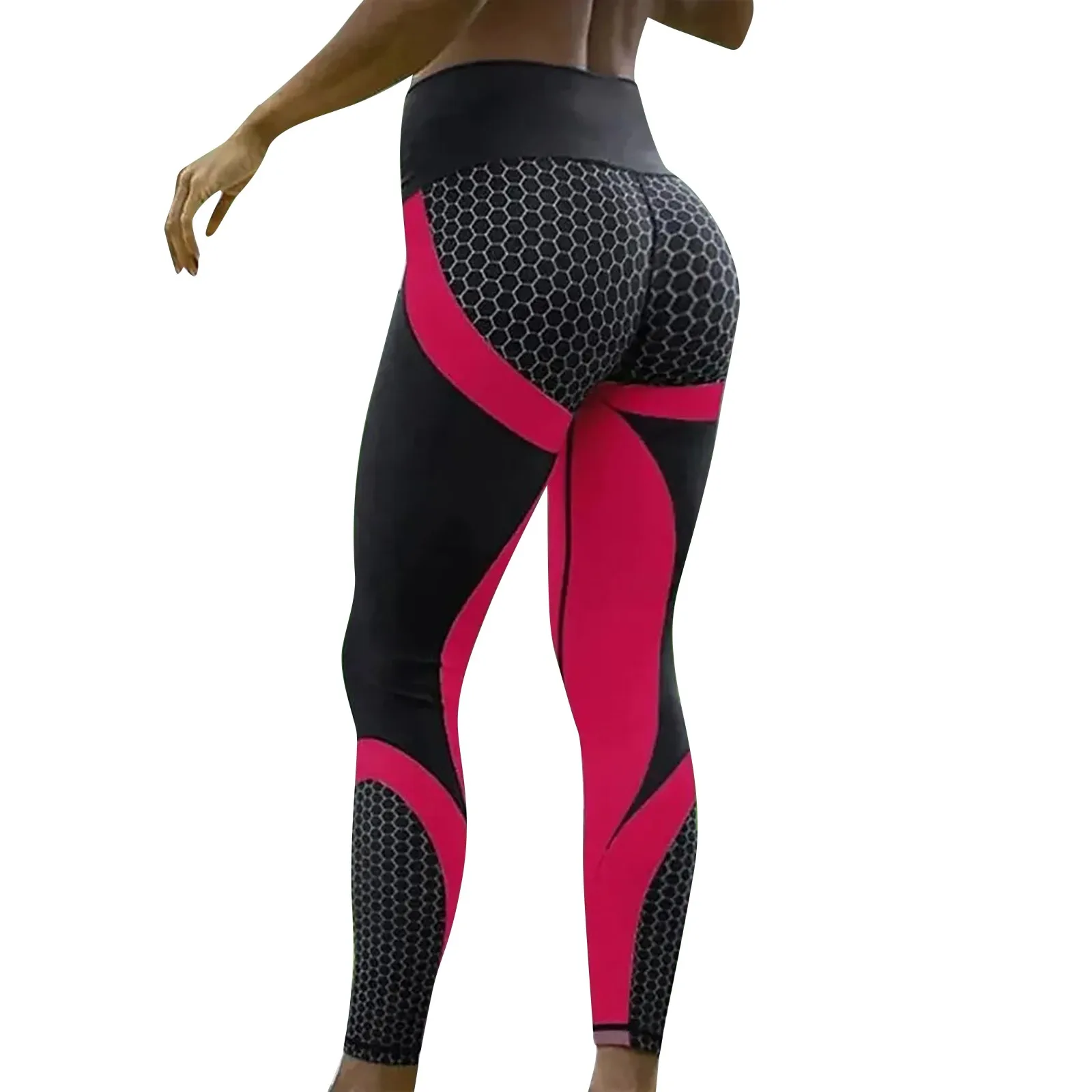 Confort High Waist Honeycomb Print Sport Fitness Leggings Yoga Running Sports Tights Woman Stretchy Trousers Female Skinny Pants
