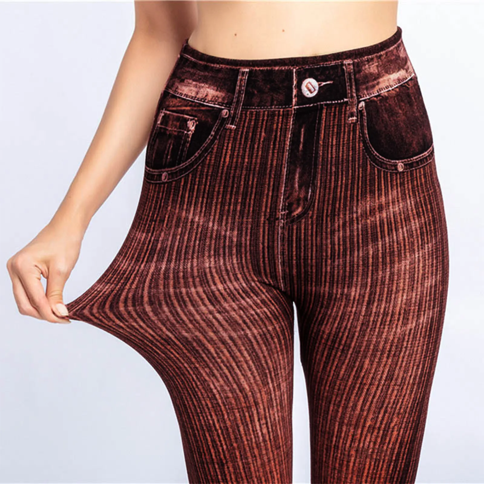 Stretch Well Fitness Fake Pockets High Waist Leggings Faux Denim Jeans Sexy Elastic Jeggings Soft Casual Thin Pencil Pants