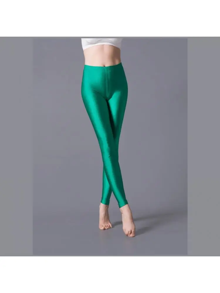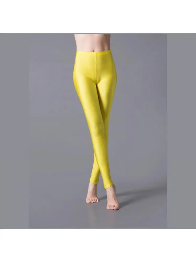 Little Sister Clothes Large Size Color Selection Ladies Leggings Bright Fluorescent Smooth Solid Glossy Pants Dance Performance