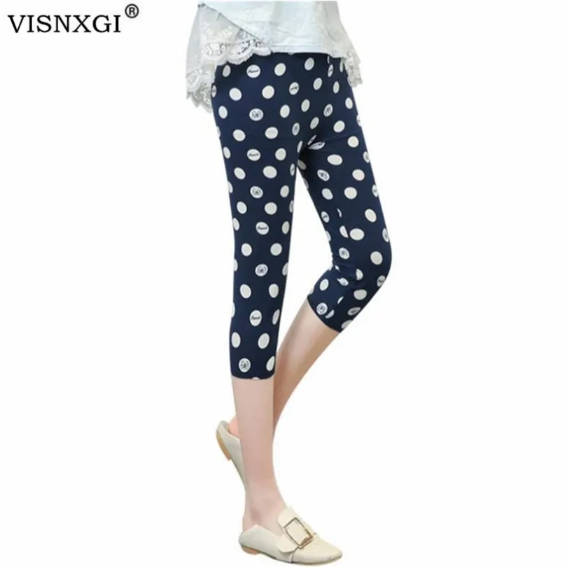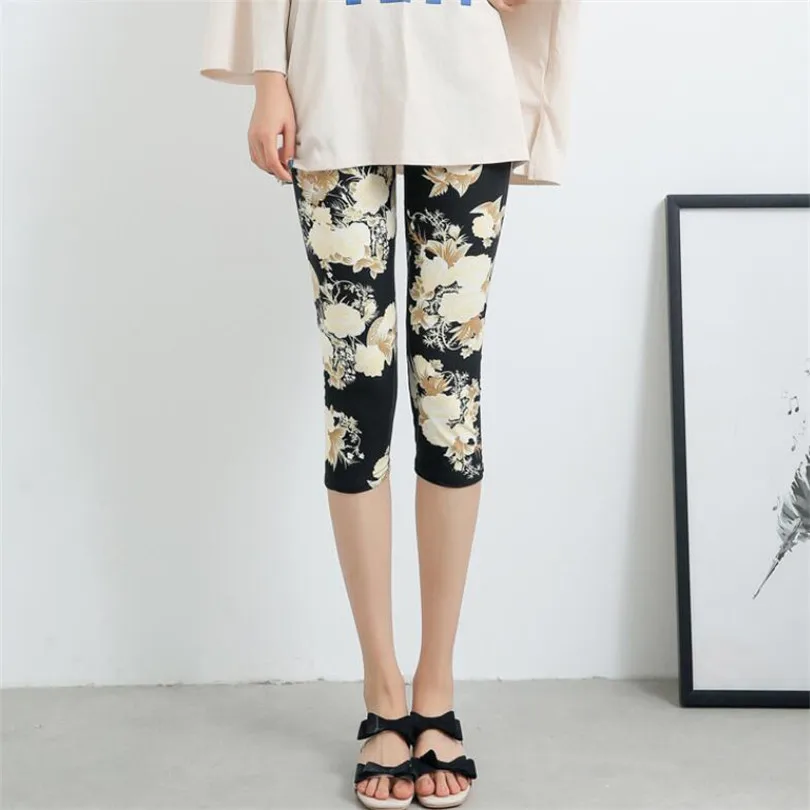 VISNXGI Floral Printing Capris Leggings Casual Stretched Graffiti Elastic Cropped Trousers Summer Women Knit Polyester Mid-Calf