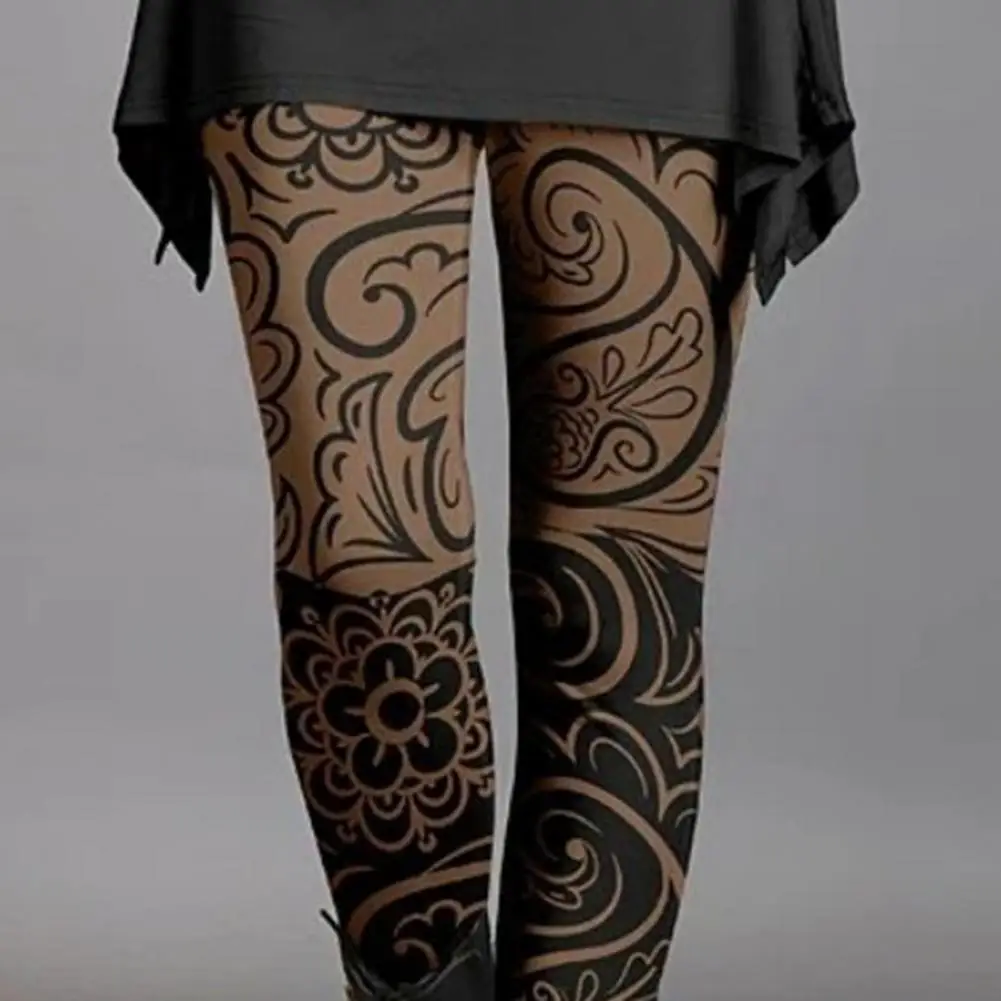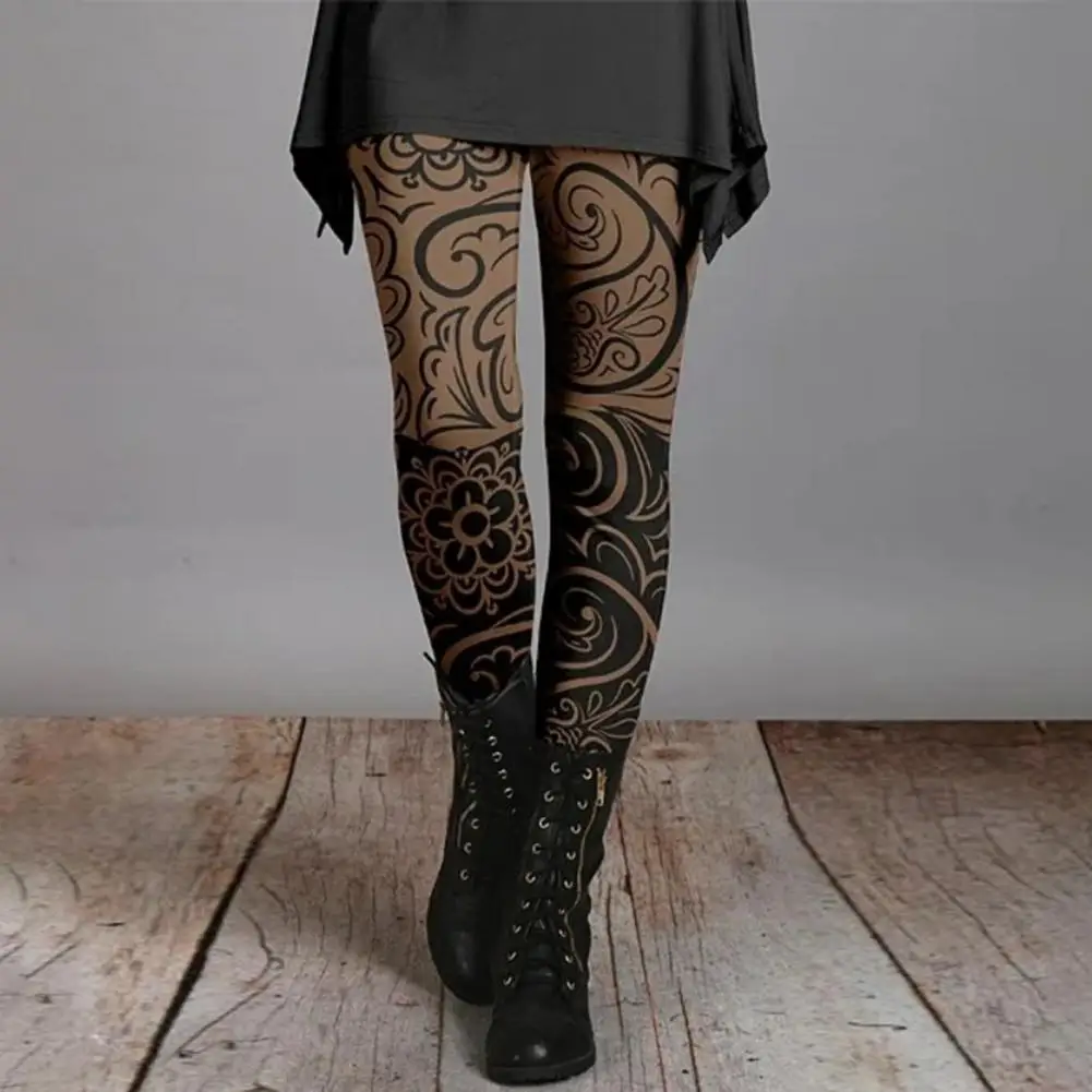 Slim Fit Pants Elastic Fit Leggings Vintage Ethnic Style Flower Print Skinny Pants for Women Super Stretch Slim Fit High Waist