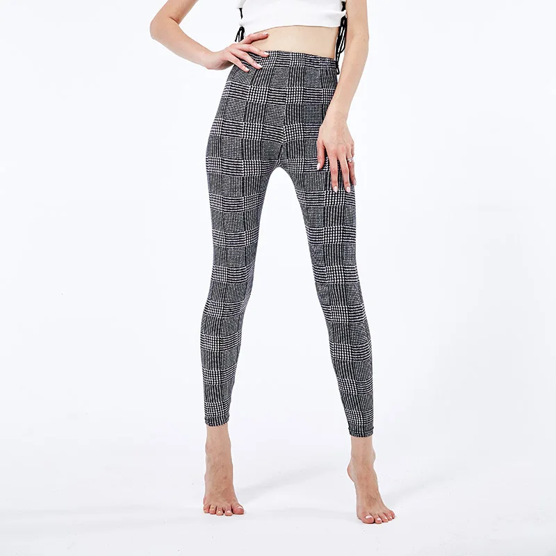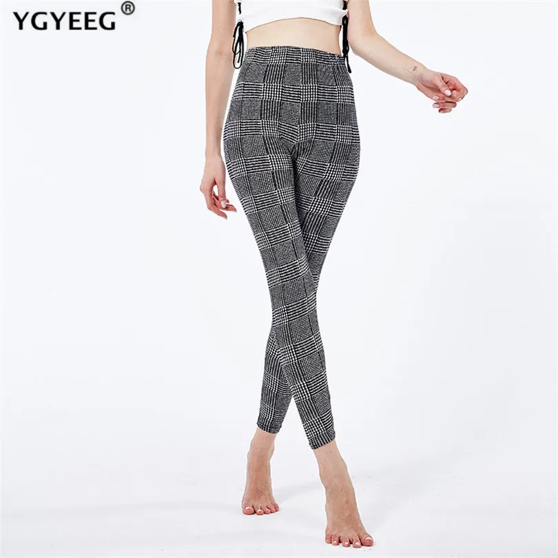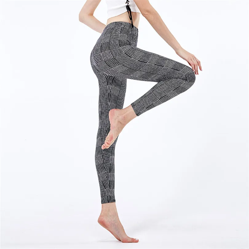 YGYEEG Women Black Plaid Printing Push Up Leggings Fashion Fitness Trouser High Elastic Waist Pants Summer Ankle Length Bottom