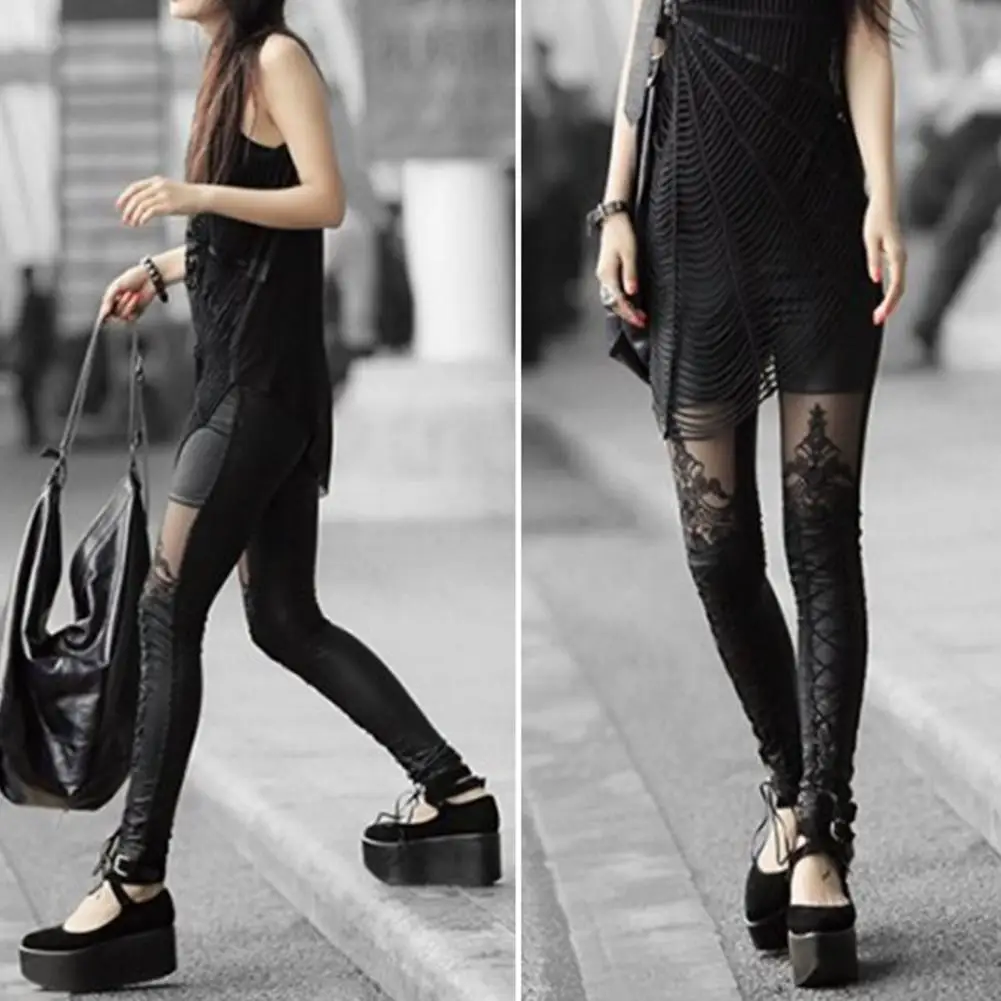 Pencil Pants Cross Bandage Faux Leather Pants Sexy High Elasticity Skinny Long Leggings