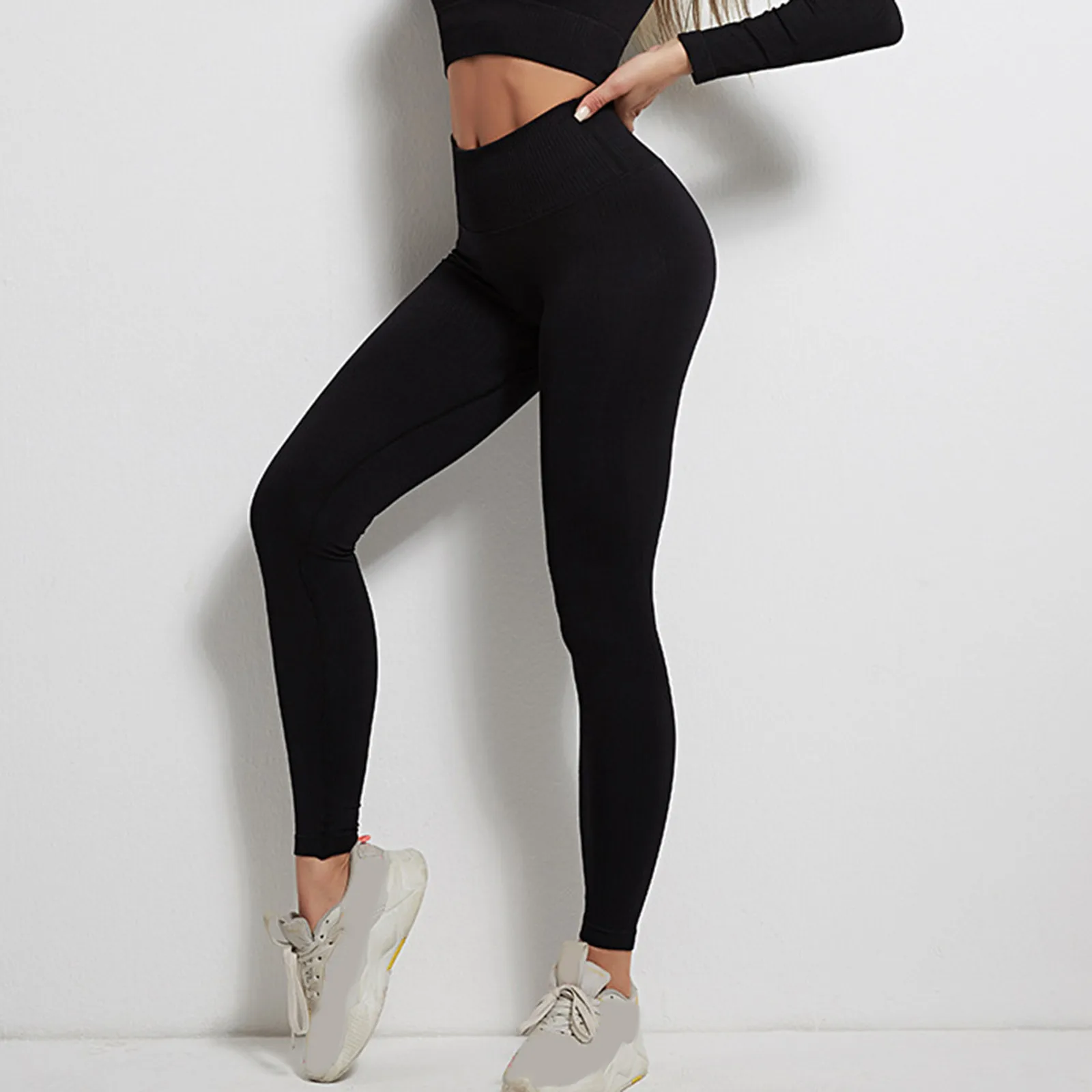 Women High Waist Fitness Leggings Butt Lift Stretchy Breathable Sports Tights Solid Color Gym Running Leggins Full Length Pants