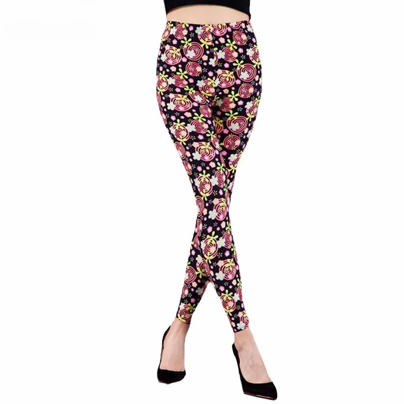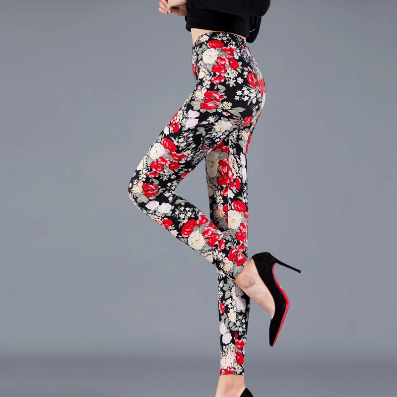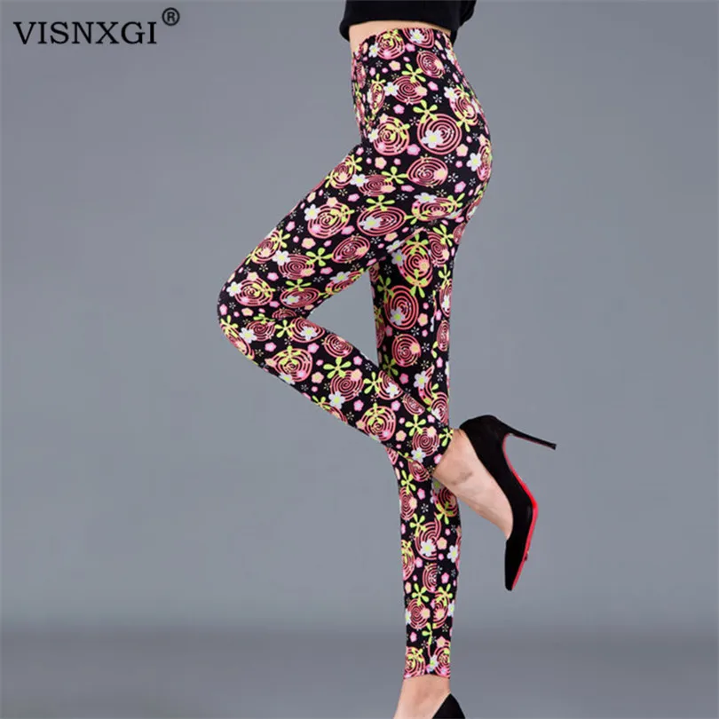 VISNXGI Women Autumn Clothes Printed Legging Exercise Elastic Flower Patterned High Waist Pants Push Up Fitness Workout Bottom