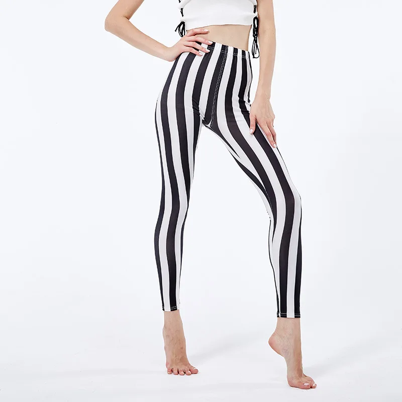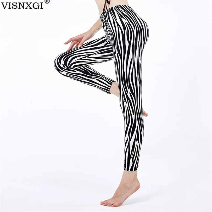 VISNXGI Stripe Sexy High Waist Leggings Sport Women Pants Push Up Trousers Elastic Workout Fitness Floral Patterned Female New