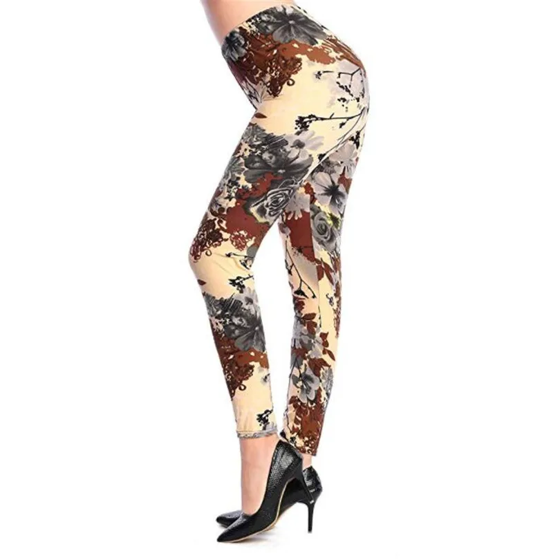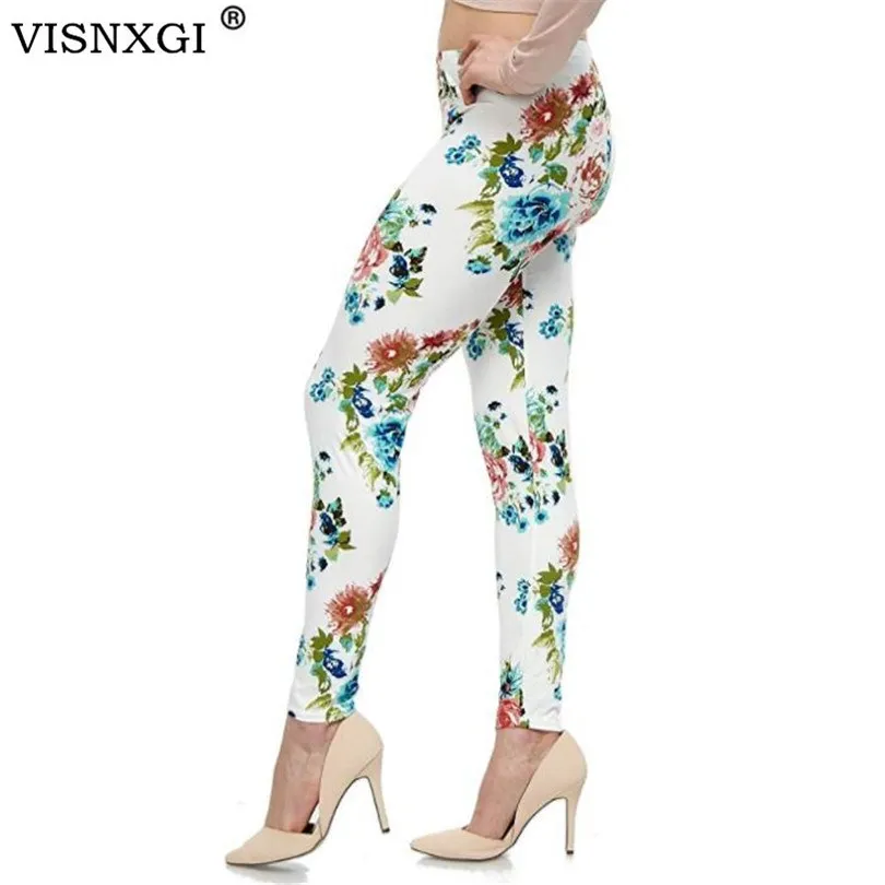 VISNXGI Polyester Leggings Women Printing Plaid Fitness High Elasticity Waist Stretch Trouser Letter Flower Camouflage Pants