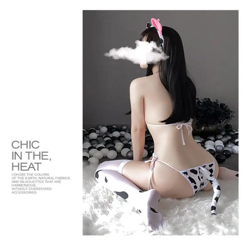 Cow Sexy Cosplay Costume Maid Swimsuit Anime Bikini Set Bra and Panty Stocking