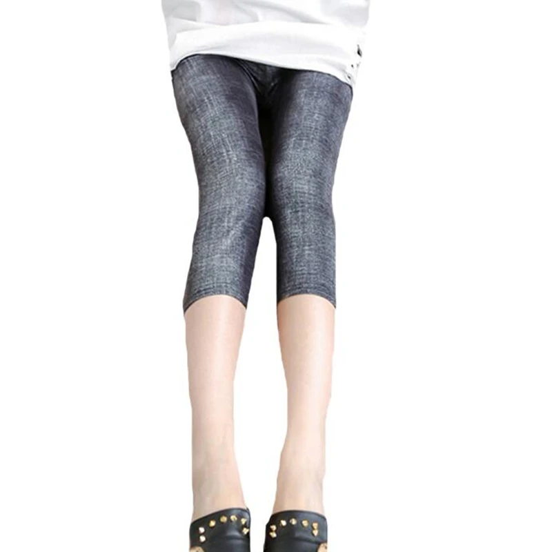 VISNXGI Women Imitate Jeans Printing Leggings Skinny Slim Thin High Elastic Waist Mid-Calf Pencil Push Up Summer Sport Pants