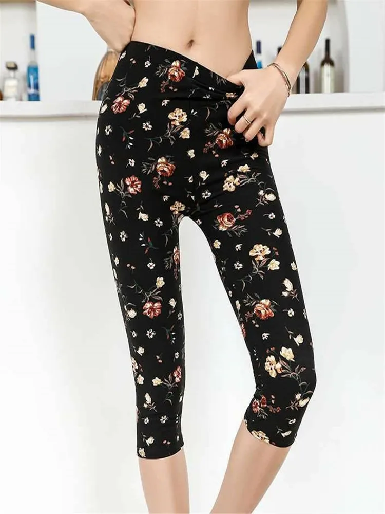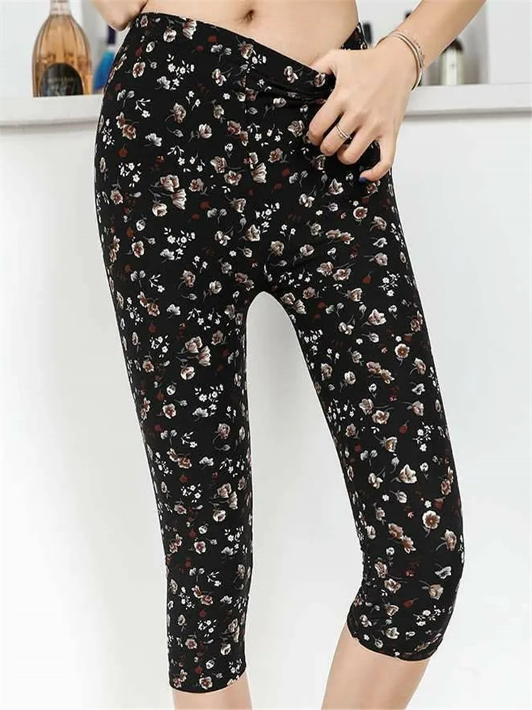 YRRETY Women Capris Pants Summer Fashion Plaid Printing Casual Elastic Colorful Flowers Trousers Stripe Workout Ladies Clothing