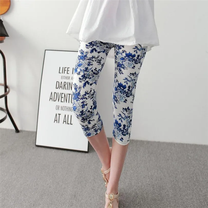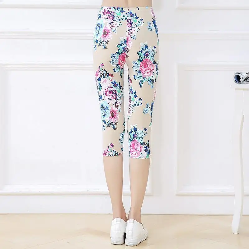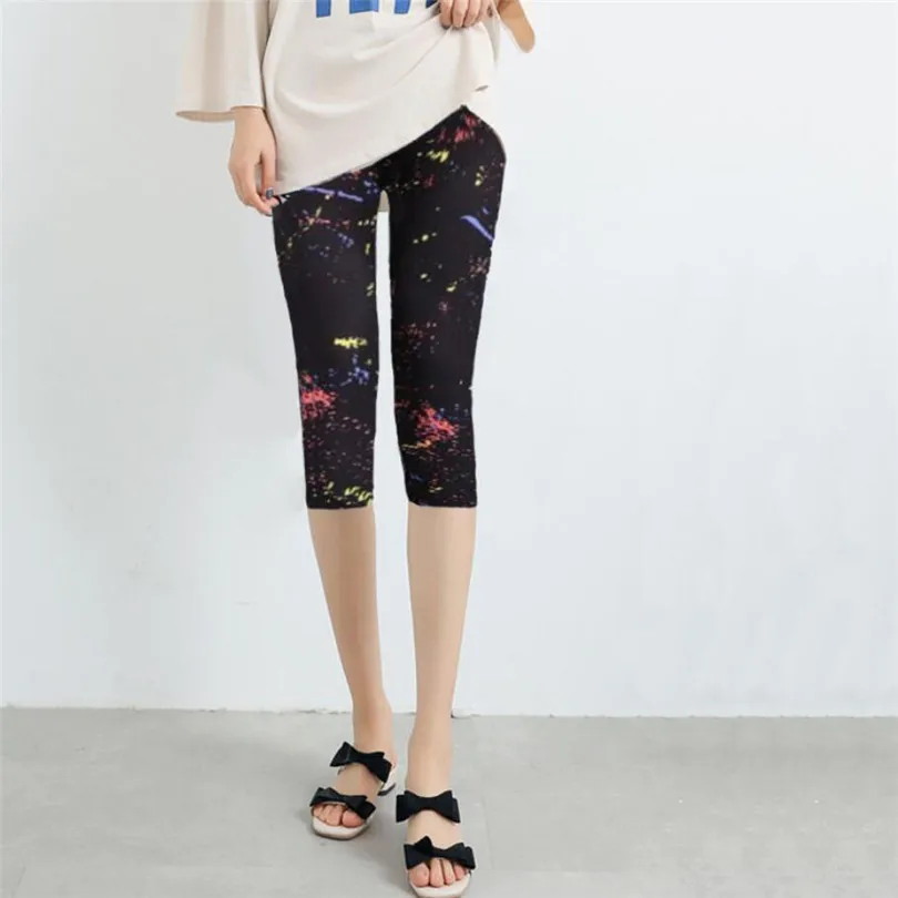 YGYEEG Printing Mid-Calf Leggings Graffiti Flowers Women Capris Fitness Pants Elasticity Short Elastic Summer High Street Bottom