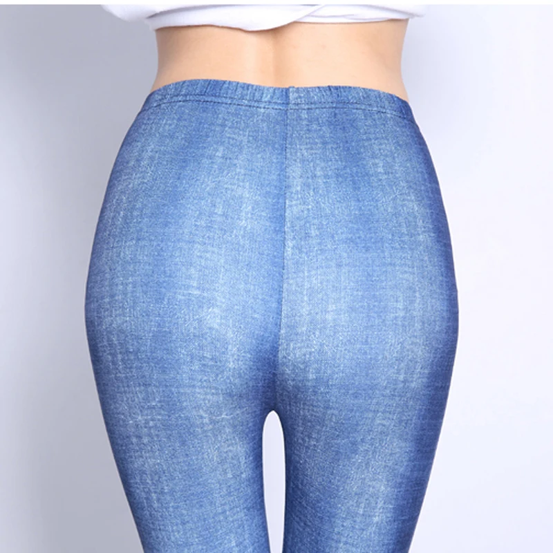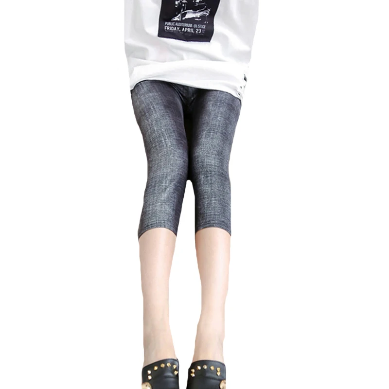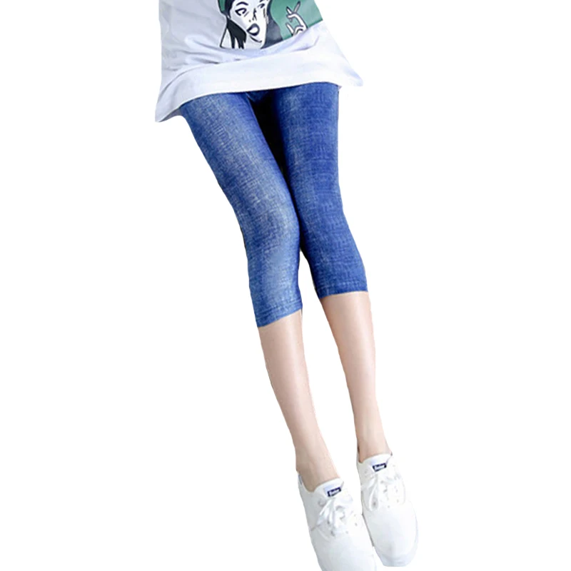 YSDNCHI High Waist Capris Elastic Pants Short Leggings Women Slim Trousers Gym Fitness Blue Leggins