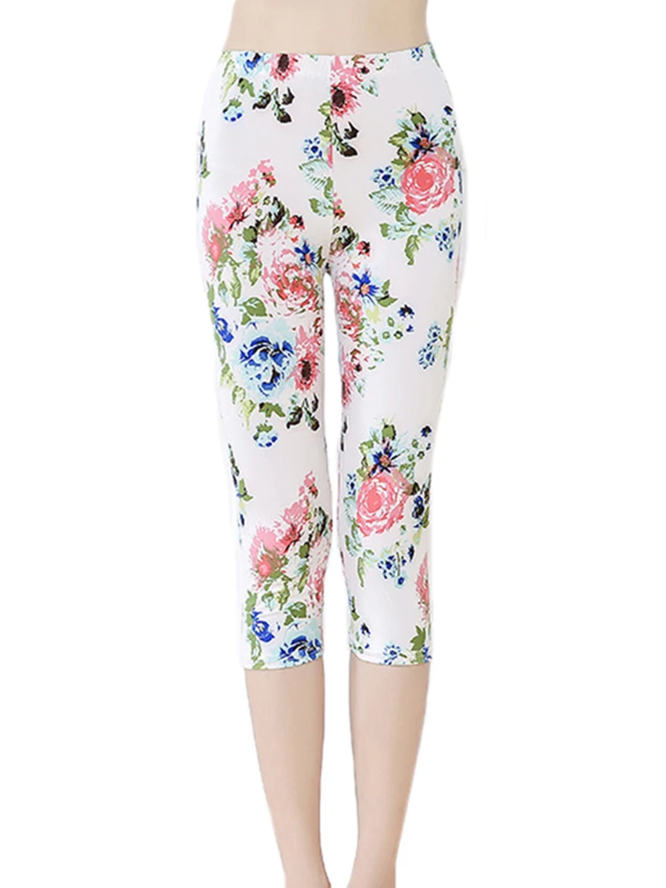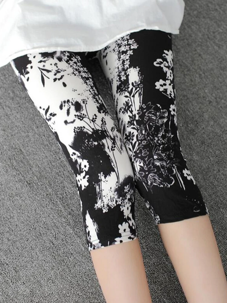 CUHAKCI Printing Pants Women High Quality Capris High Waisted Floral Lady's Fitness Leggings Seventh Elastic Slim Short Leggings