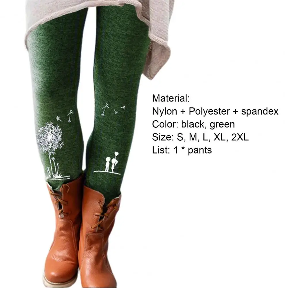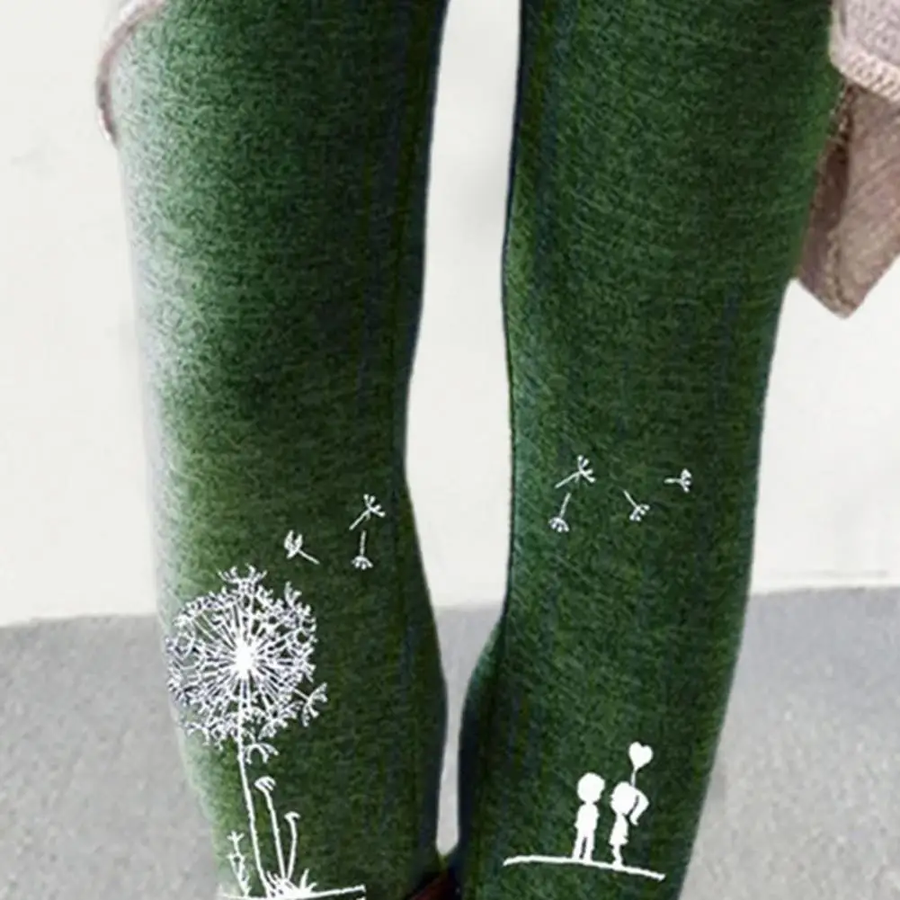 2021 Spring Autumn Women's Leggings Trousers Dandelion Print Long Pants Women Skinny Leggings Casual Women's Pants