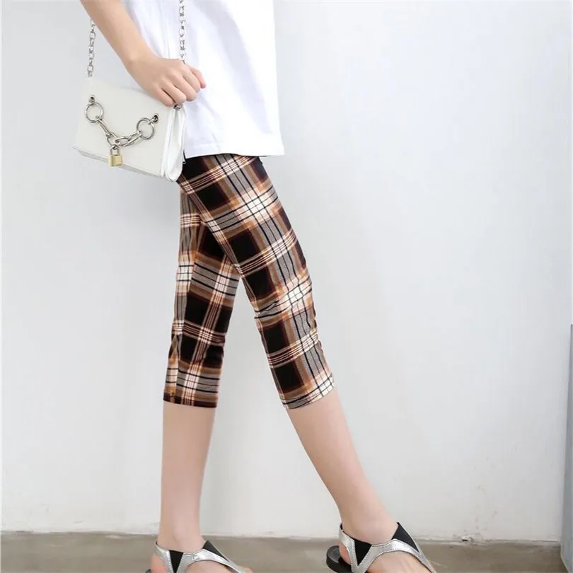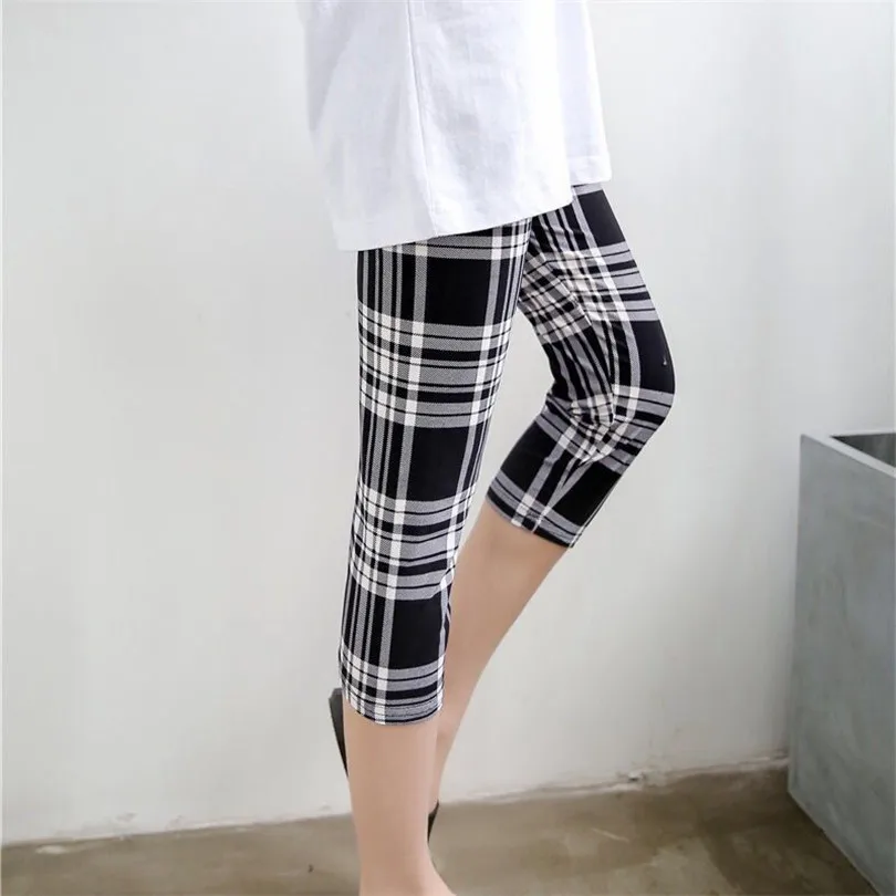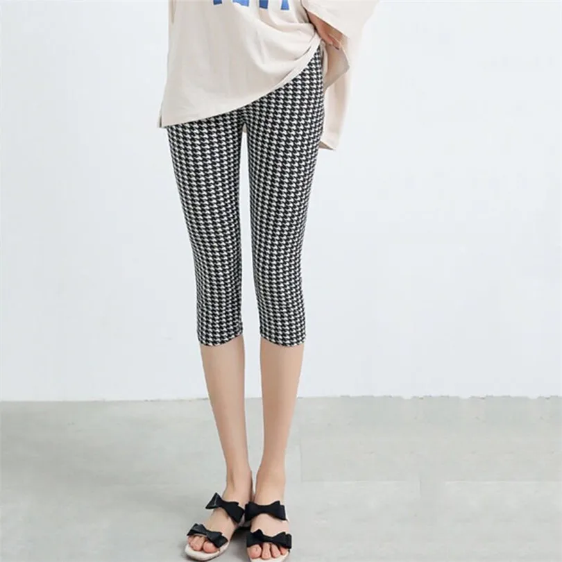 INDJXND Fitness Black White Grid Printing Capris High Waist Hip Breathable Polyester Women Skinny Calf-Length Houndstooth Pants