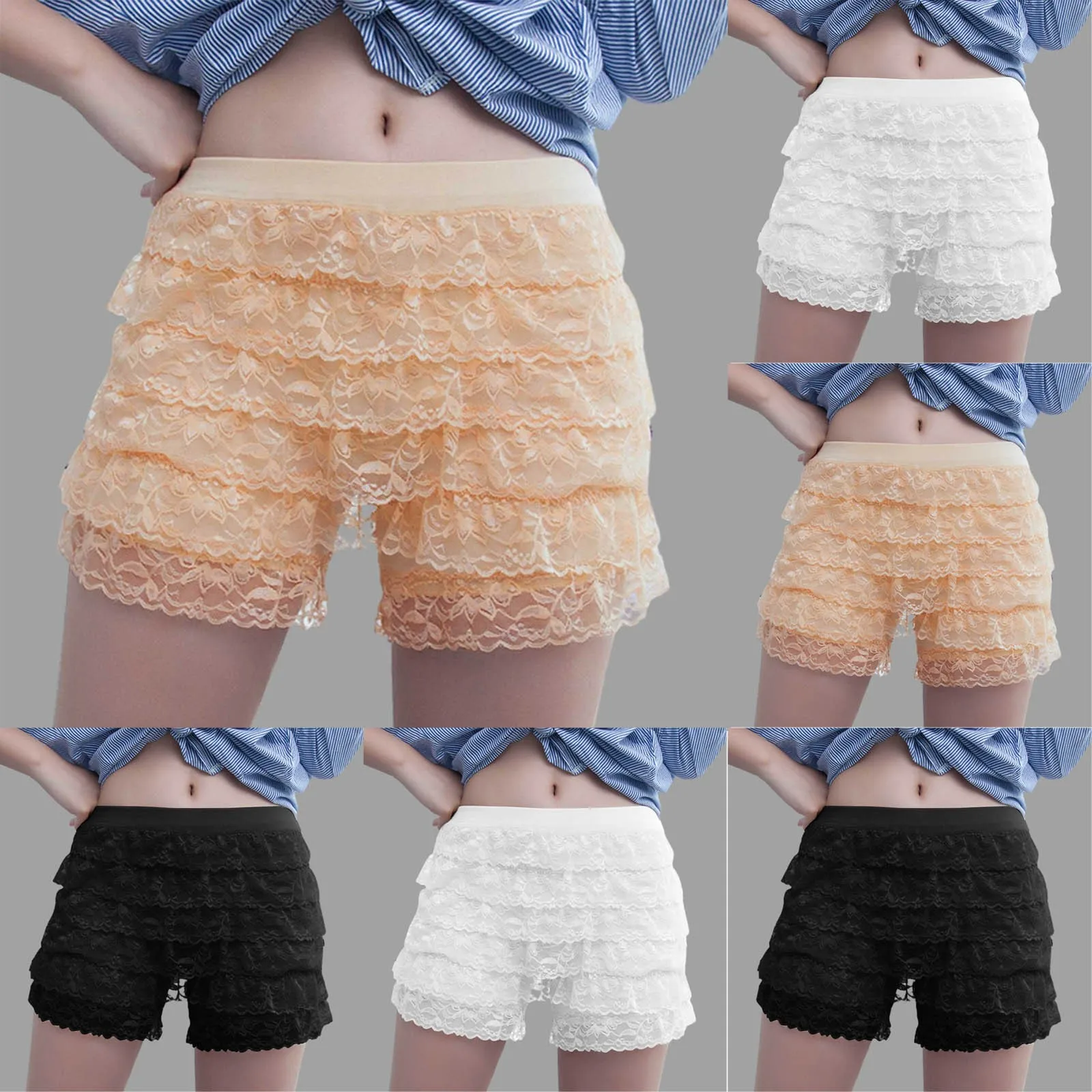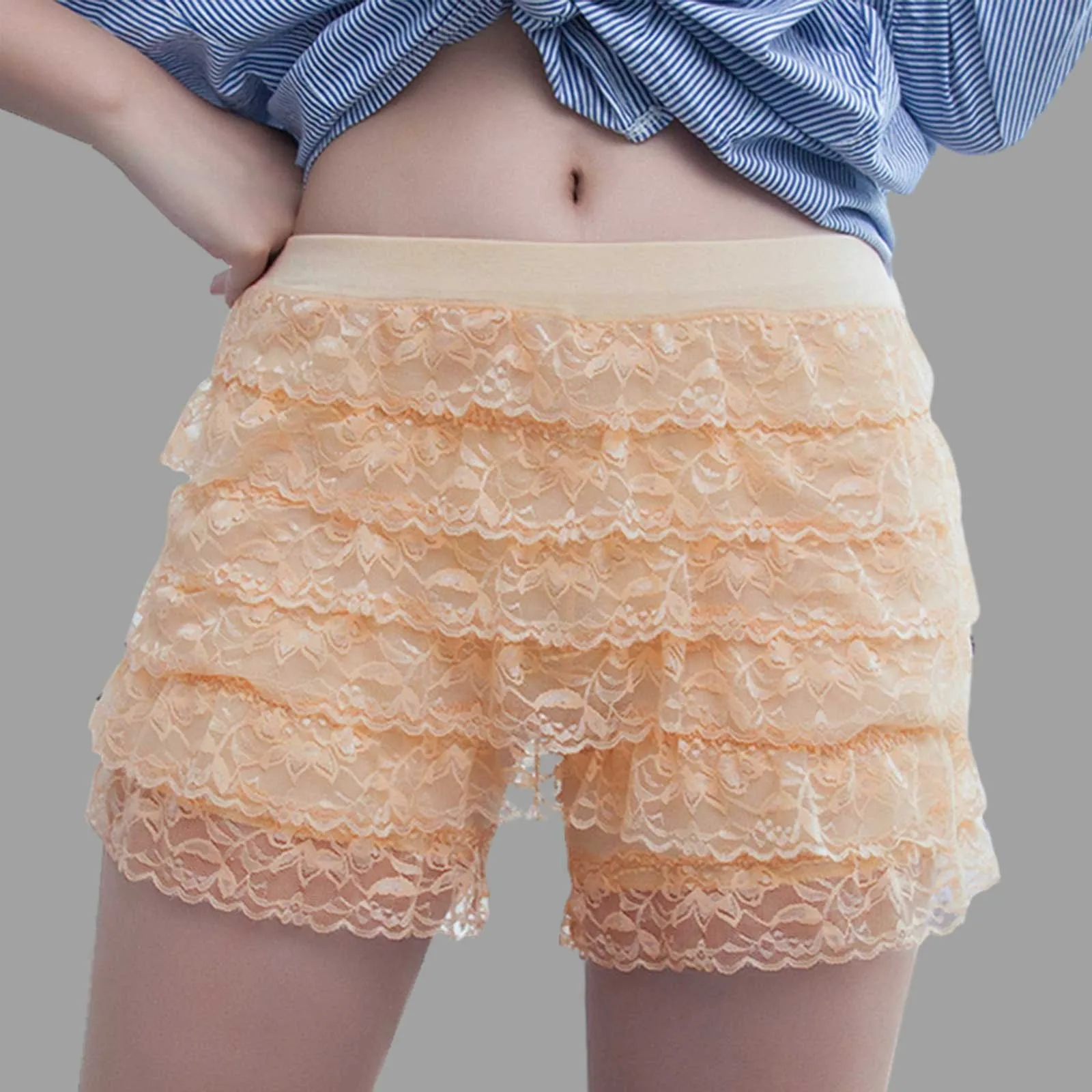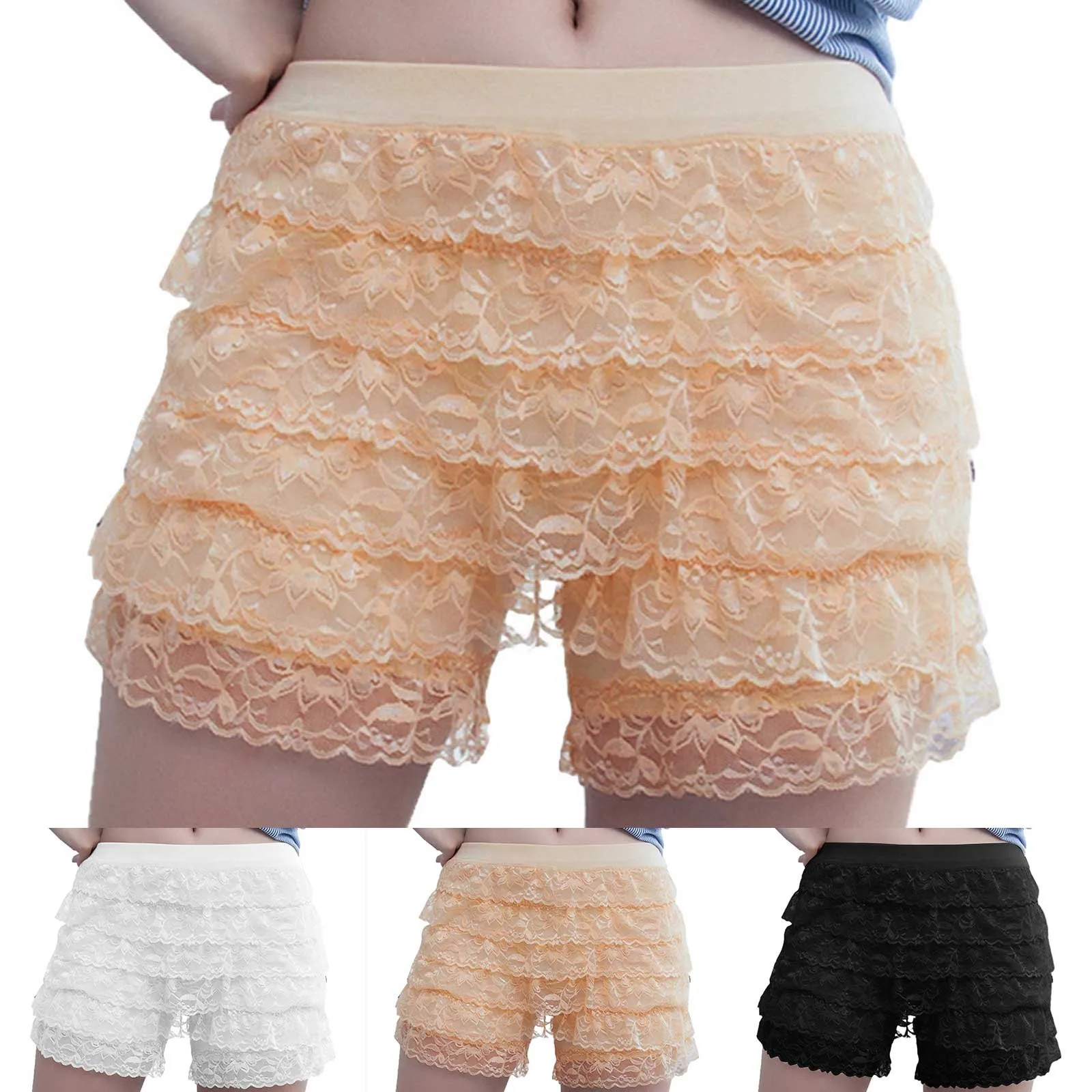 Women Solid Lace Wearing Leggings Loose Large Size Sexy Comfort Shorts