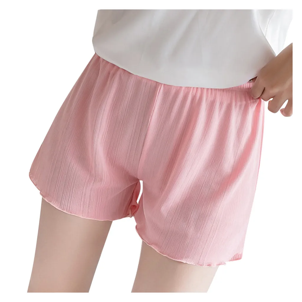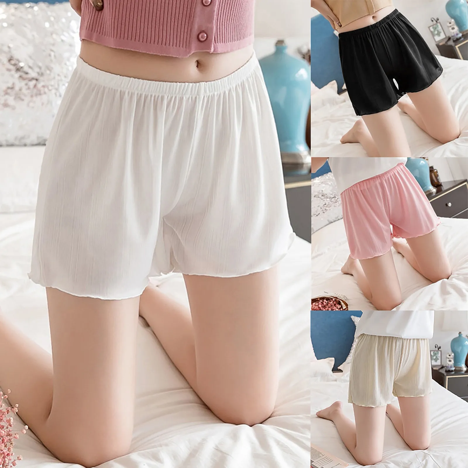 Women Summer Safety Loose Short Pants Casual Home Pants Thread Ribbed Striped Plus Size Safety Seamless Shorts Boxer Underwear