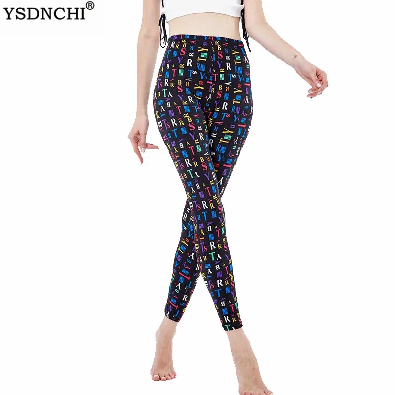 YSDNCHI Colorful Letter Printing Legging Fashion Sexy Jeggings Women Hip Push Up Traouser High Waist Leggins Gym Sports