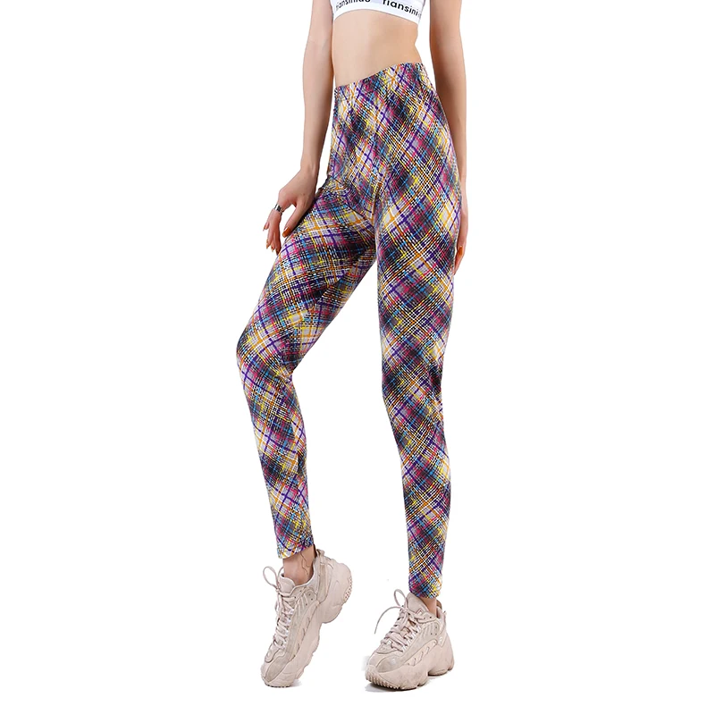CUHAKCI Colorful Plaid Print Legging Women Soft Fitness Fashion Slim Sport Pants High Waist Outside Leggins Elasticity Workout