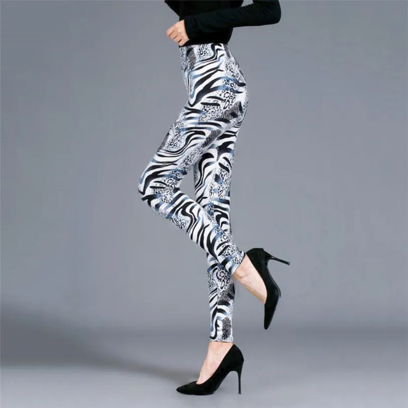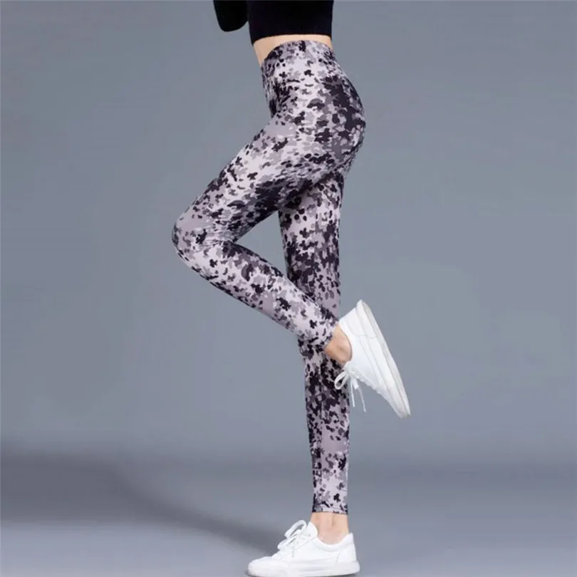 LJCUIYAO Women High Waist Leggings Leopard Print Pattern Skinny Workout Pencil Pants Ladies Stretch Running Polyester Trousers
