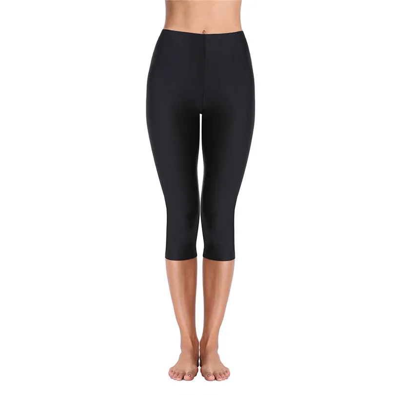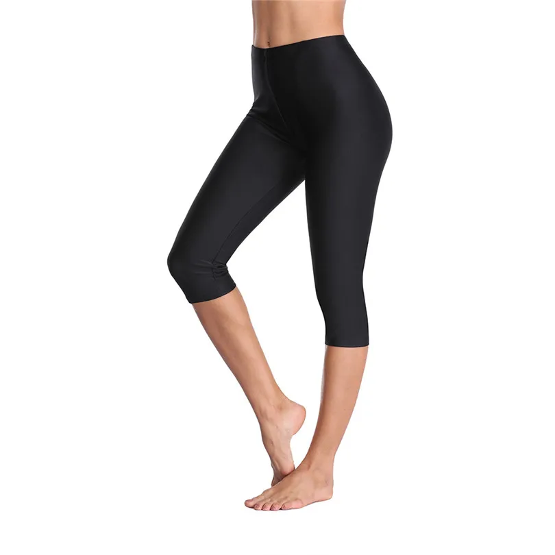 LJCUIYAO Hot Selling Women Capris Solid Color Fluorescent Shiny Pant Leggings Summer Spandex Elasticity Casual Black Trousers
