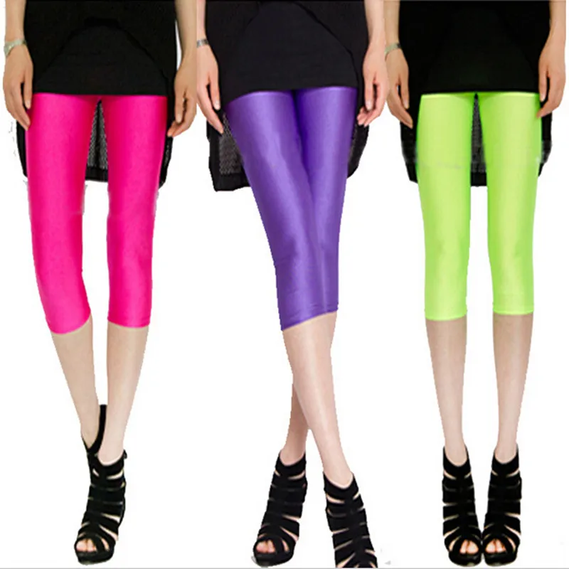 YSDNCHI Neon Candy Color Push Up Summer Legging Women Fitness Capris Girl High Waist Fluorescence Green Black Gray White