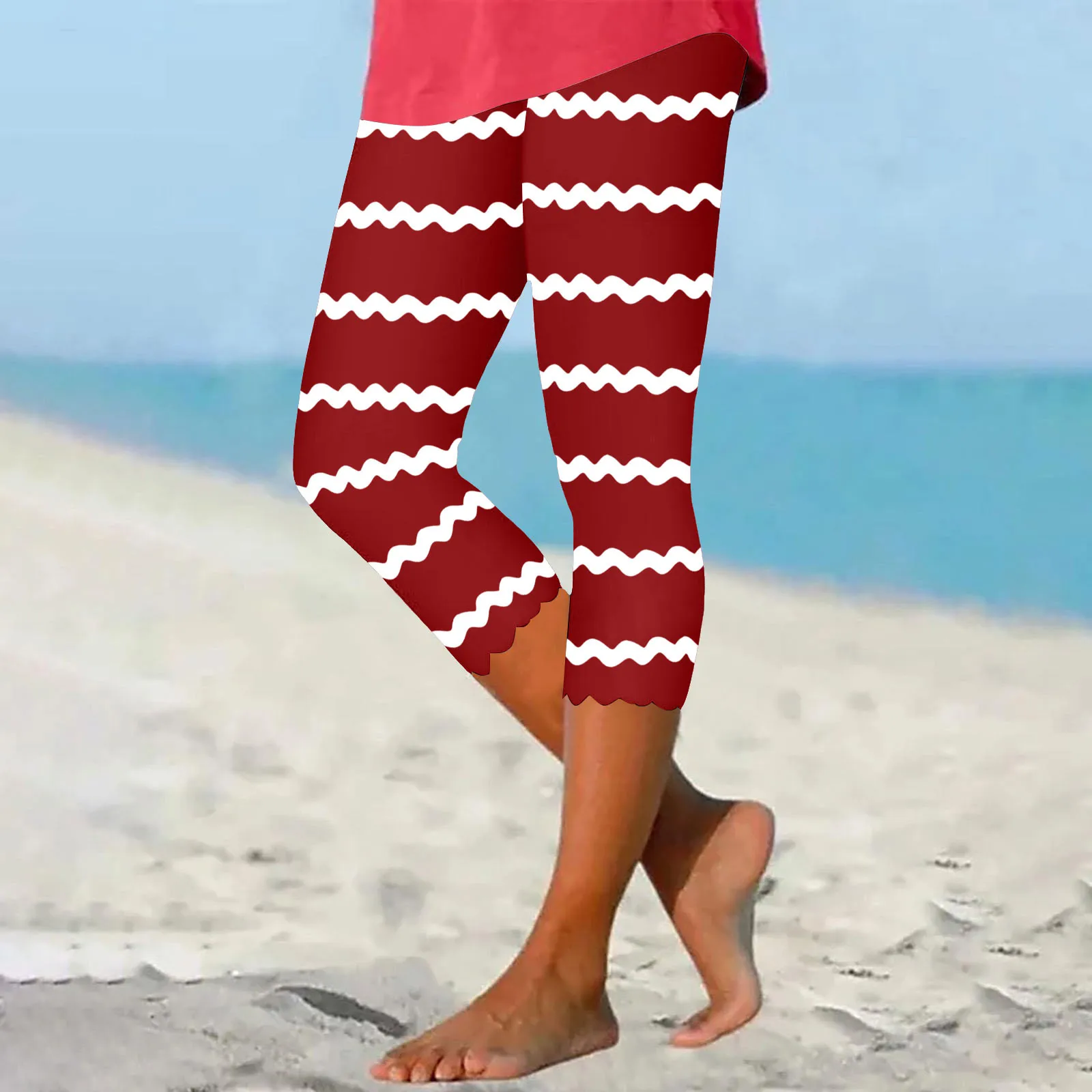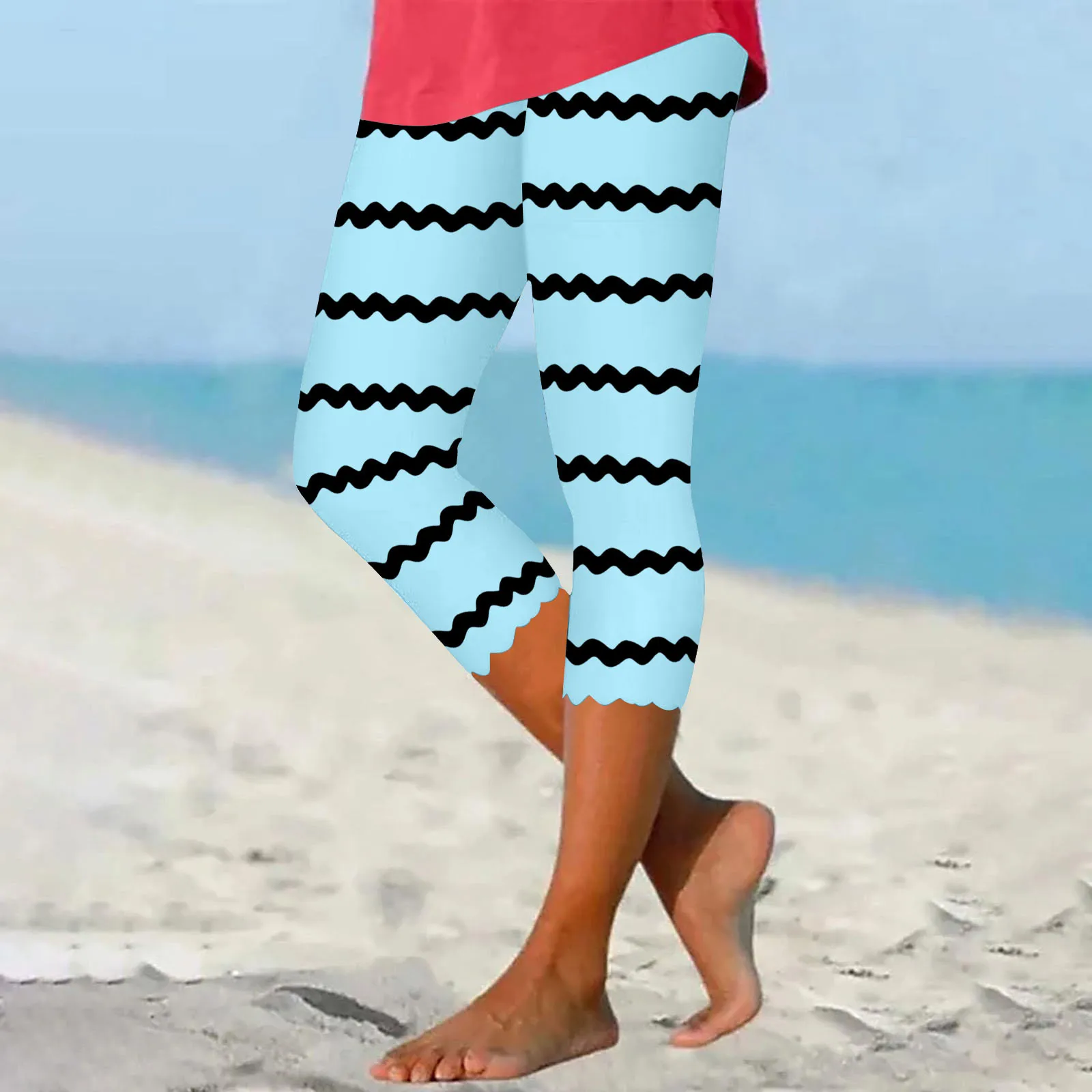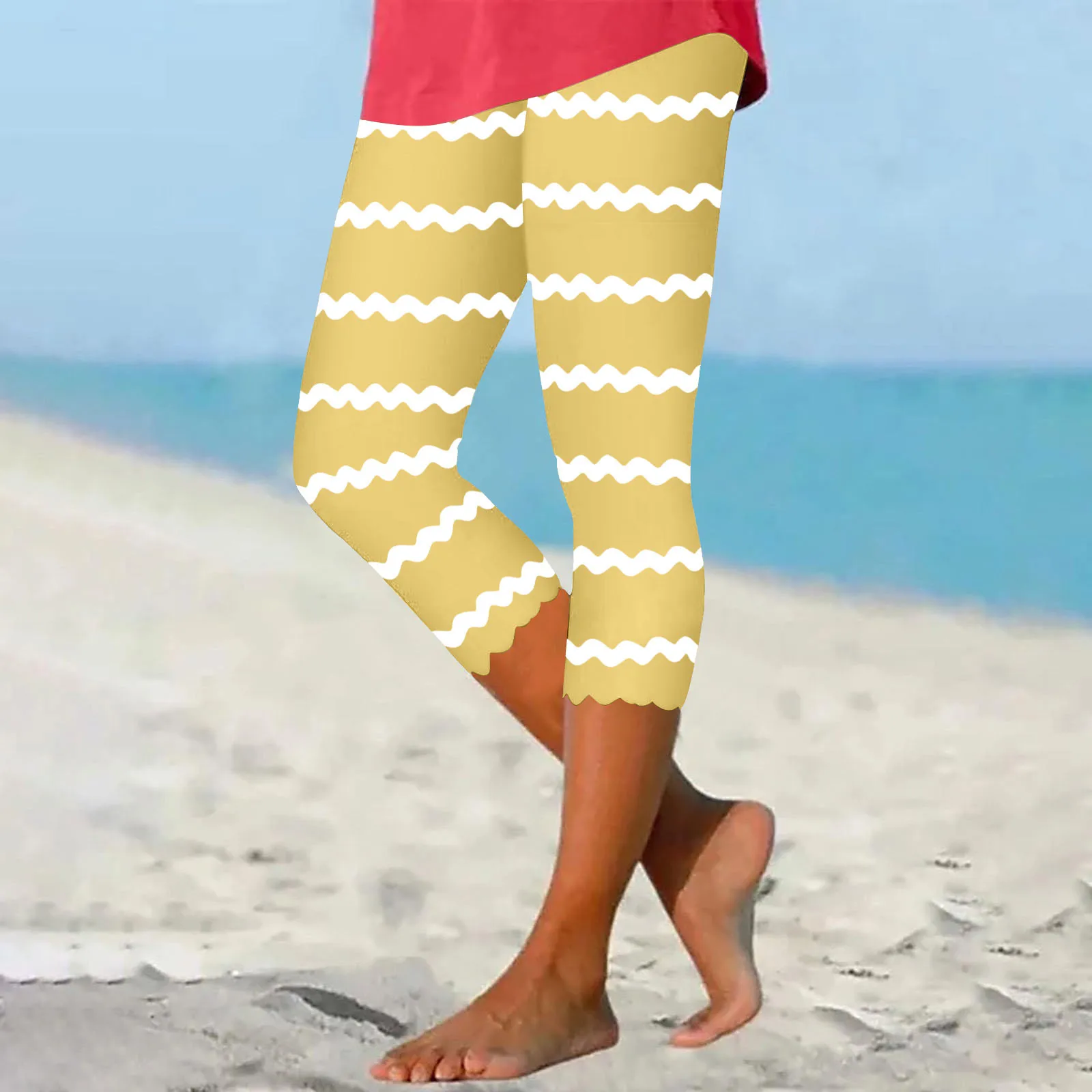 Cropped Pants Women Solid Color Yoga Legging Summer High Waist Leggings Beachwear Sport Pants Casual Workout Stretch Leggings