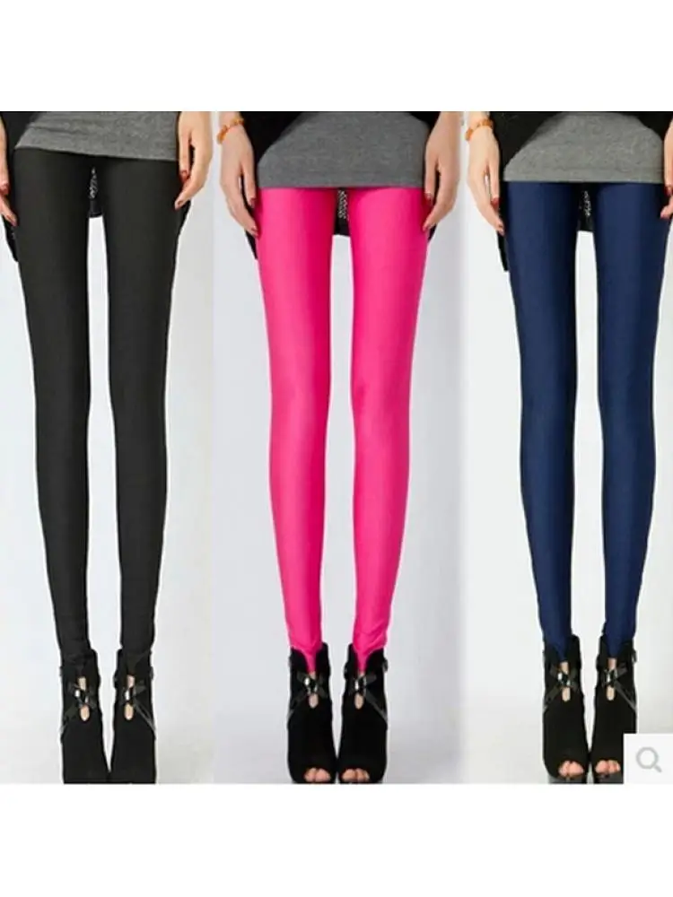 2024 Super Cheap Women Bright Pants Spring Autumn High Elastic Candy Color Fluorescent Glossy Slimming Nine Point Leggings Thin