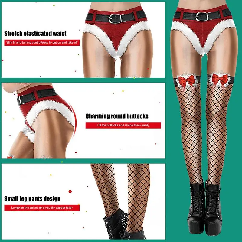Funny Christmas Tights 3D Print Soft Stretchy Santa Leggings Ankle Length Christmas Outfit For Christmas Parties Proms