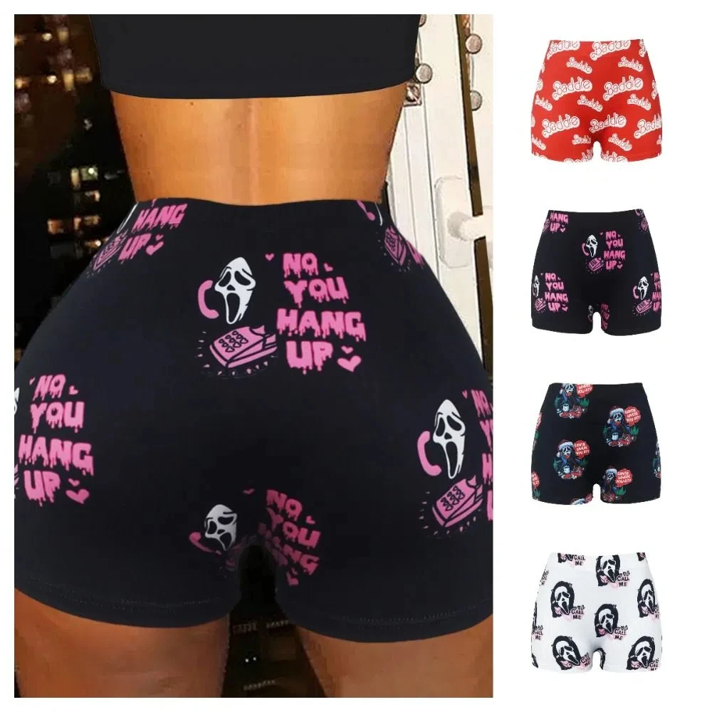 Ghost Seamless Yoga Shorts Tight Letter Printing Tie Dye Skull Shorts for Women Slimming Peach Butt Butt Lifting Leggings