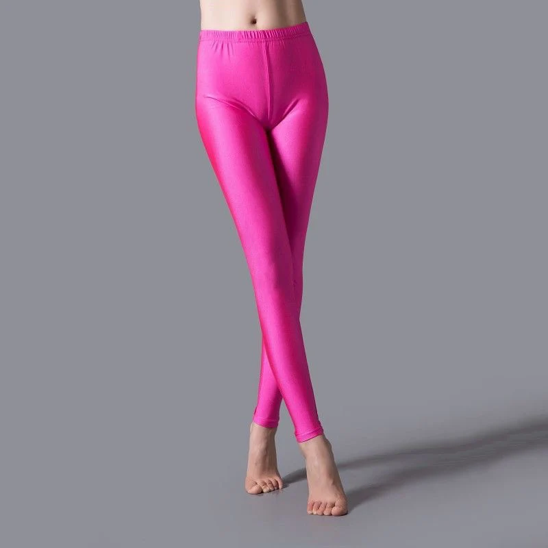INDJXND Women Fitness Leggings Solid Color Fluorescent Shiny Pant Leggings Spandex Shinny Elasticity Casual Elasticity Trousers