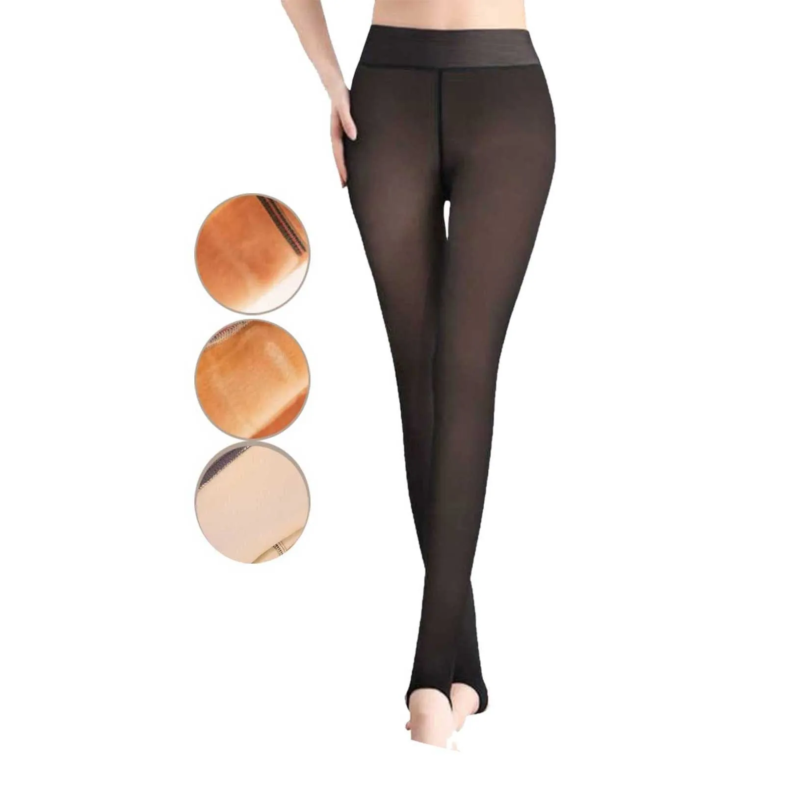 Women Fleece Tights Translucent Stockings Leggings Slim Pants Thicken Pantyhose Leggings High Waist Slim Thicken Tights Pantyhos