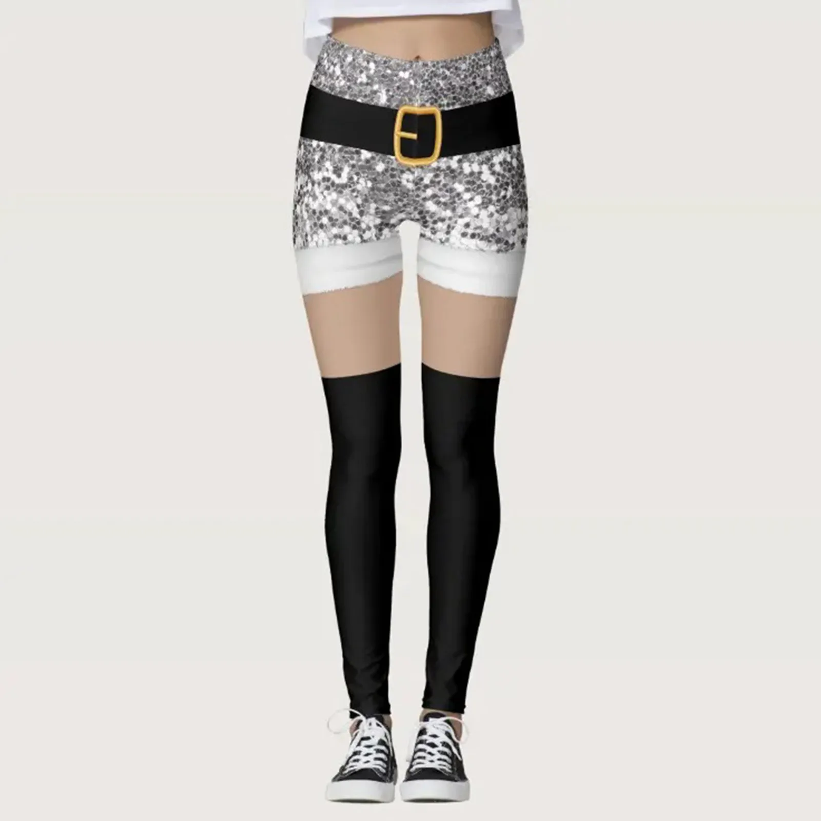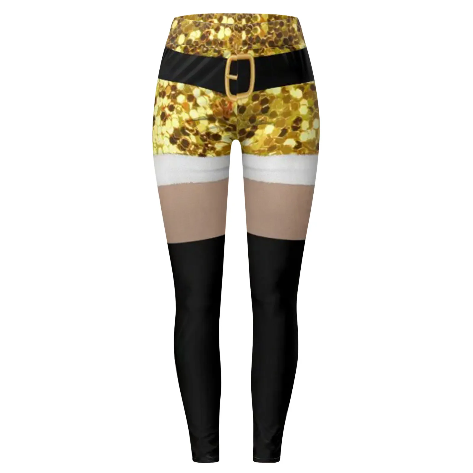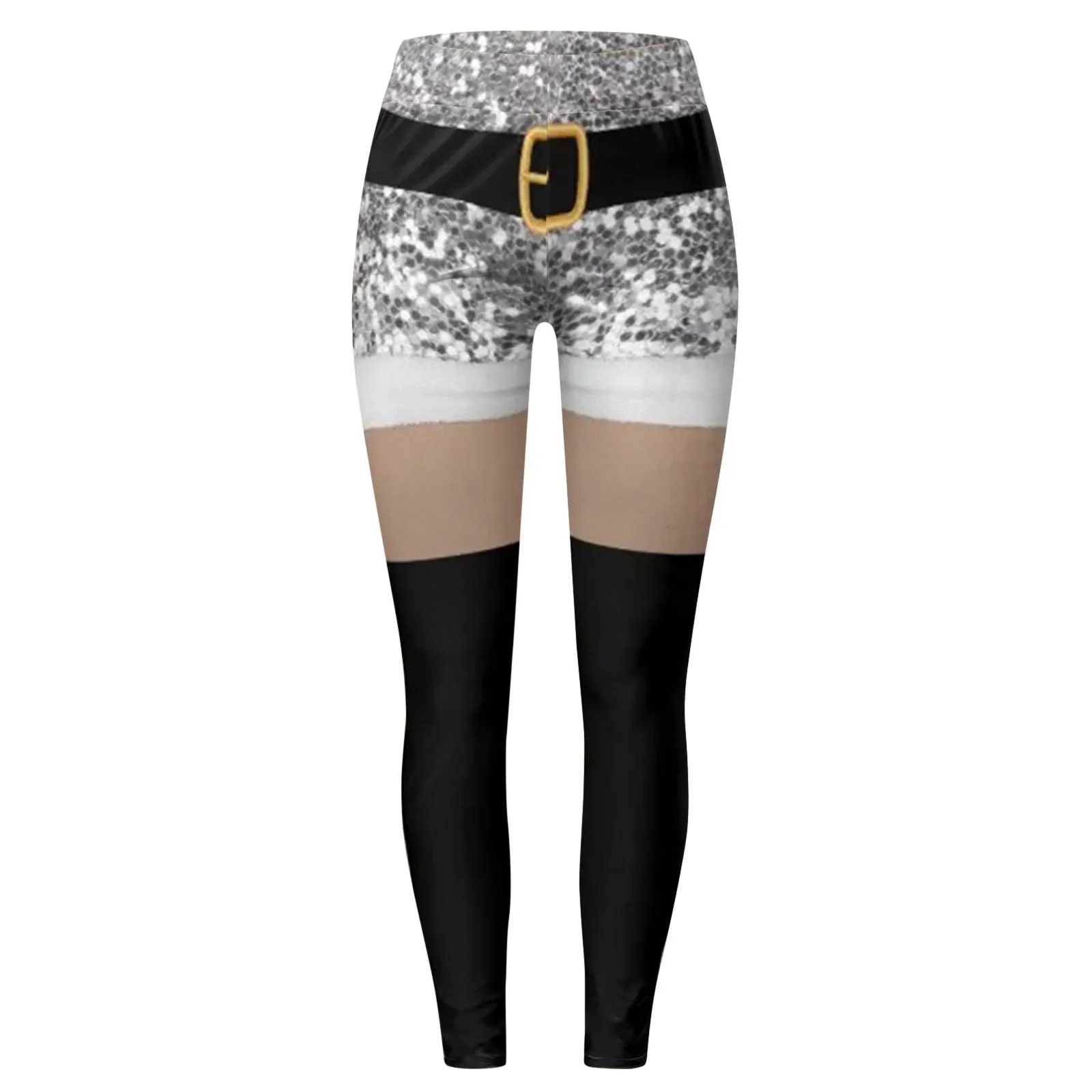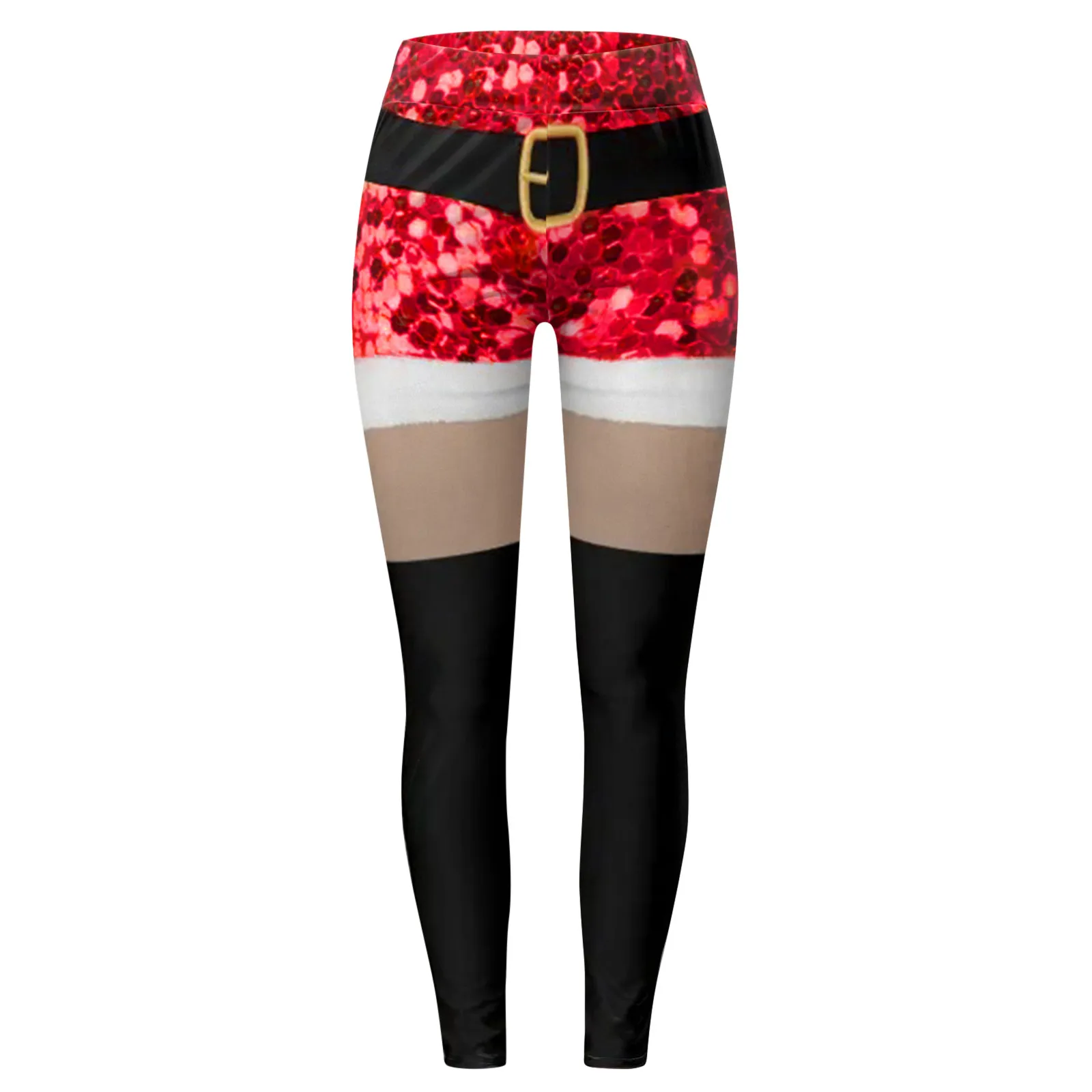 Womens Christmas Print Pants Running Christmas Santa Party Santa Claus Ladies Xmas High Waist Leggings Skinny Trousers Bottoms