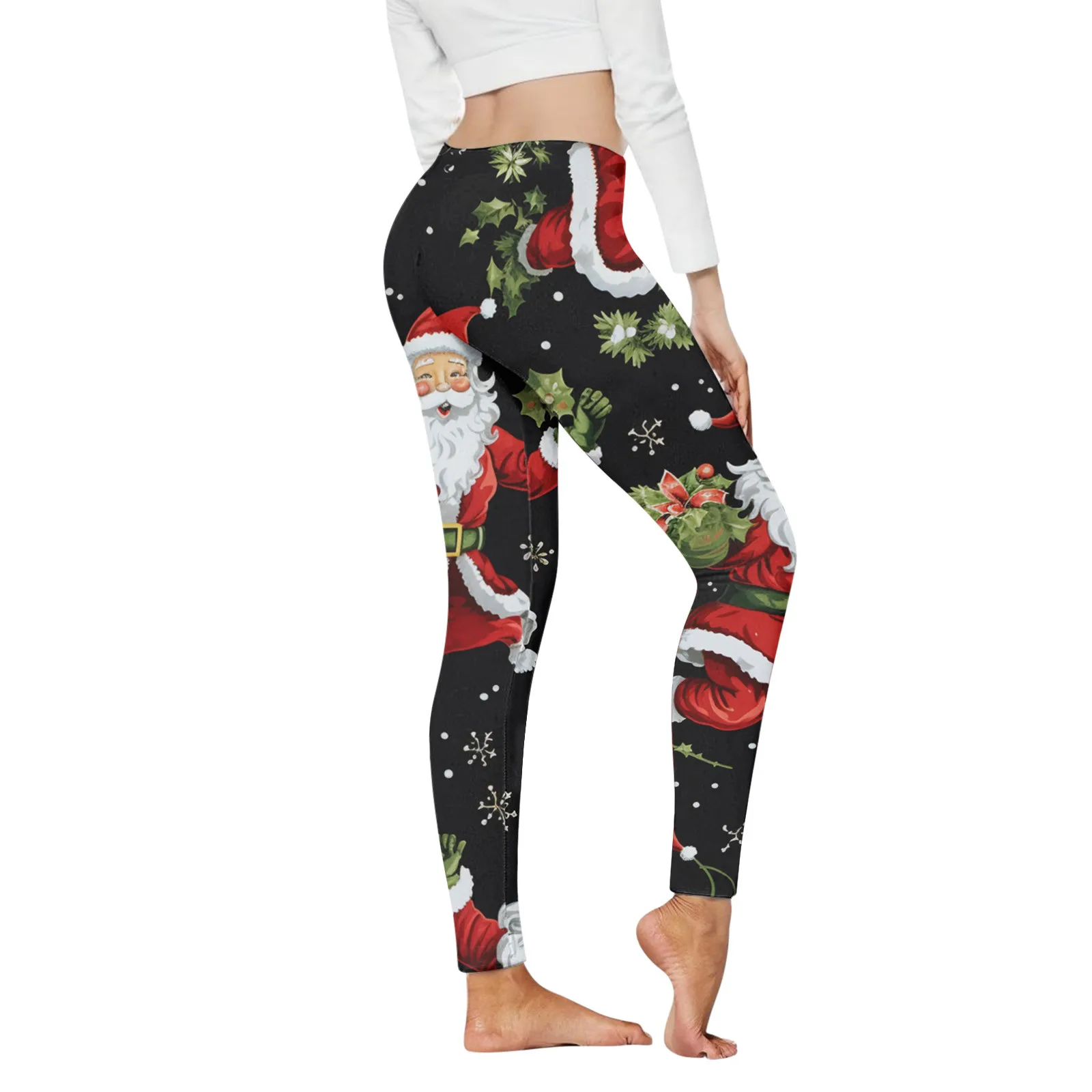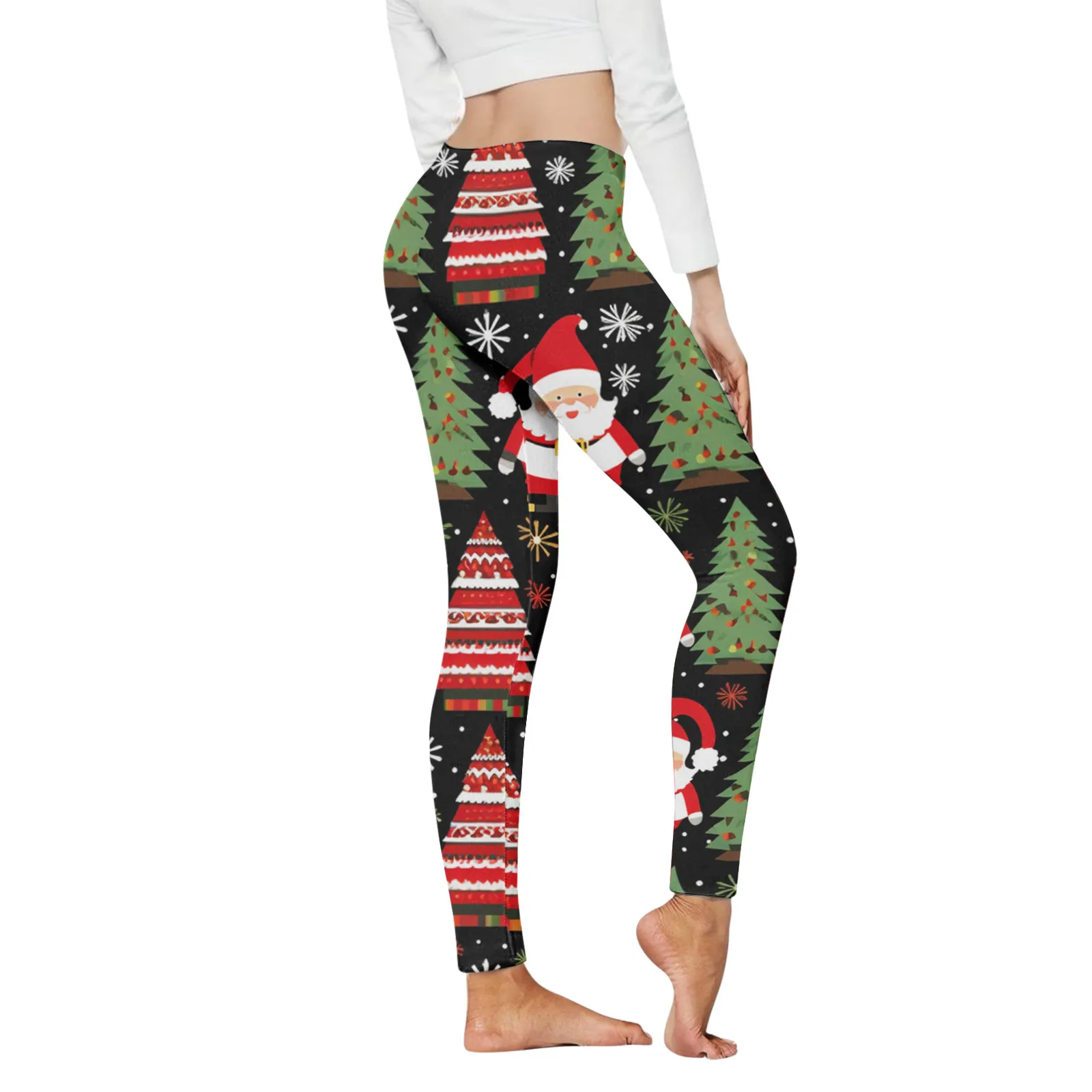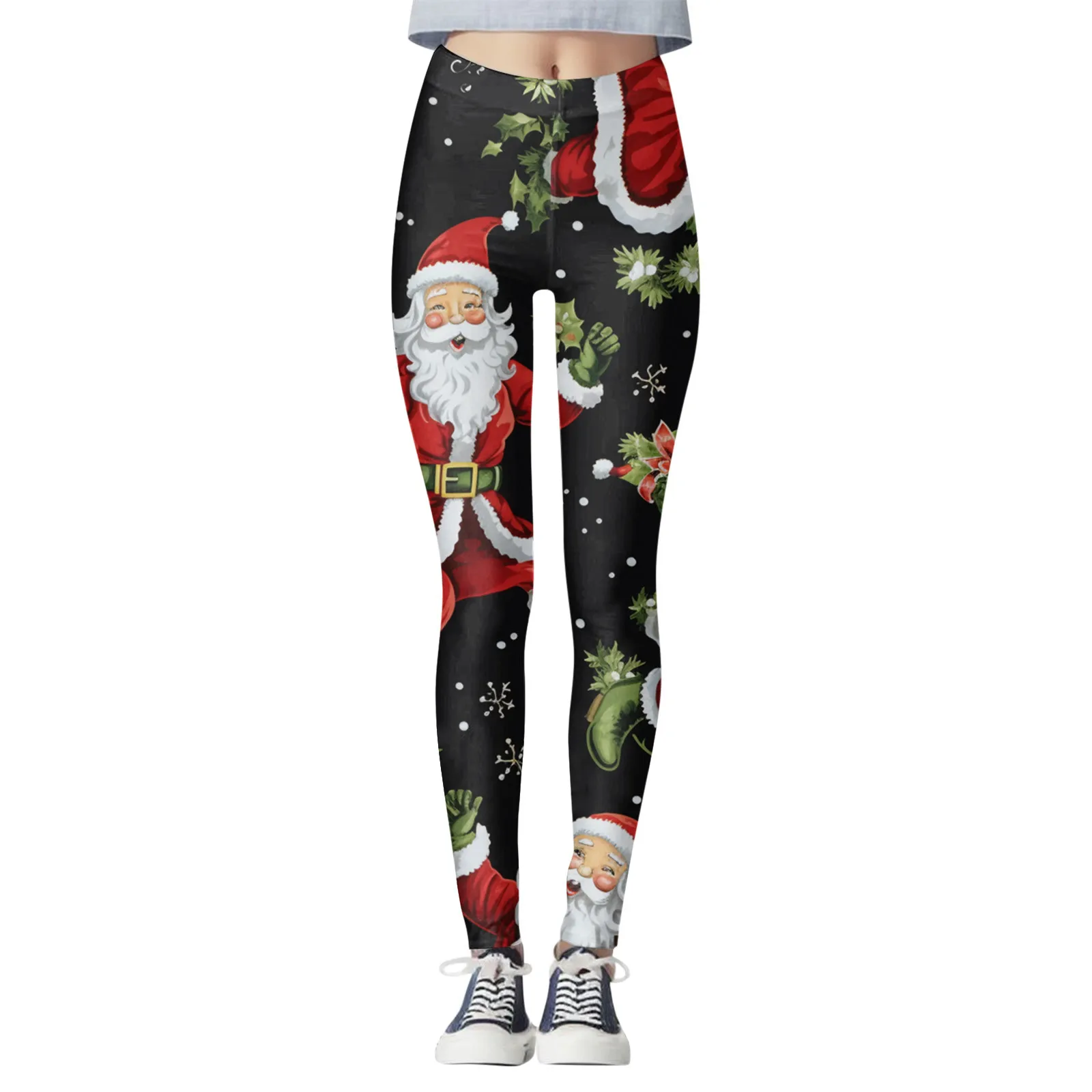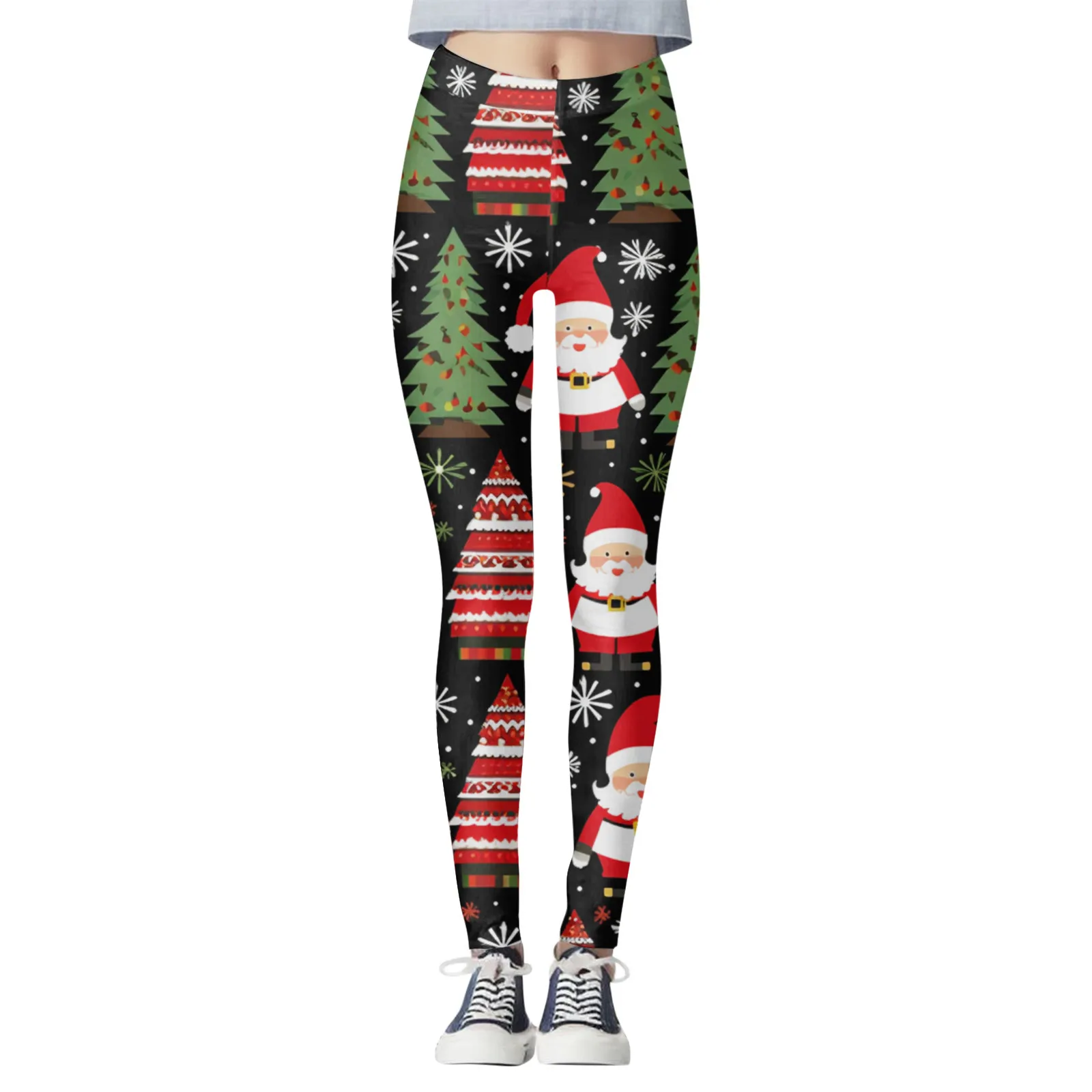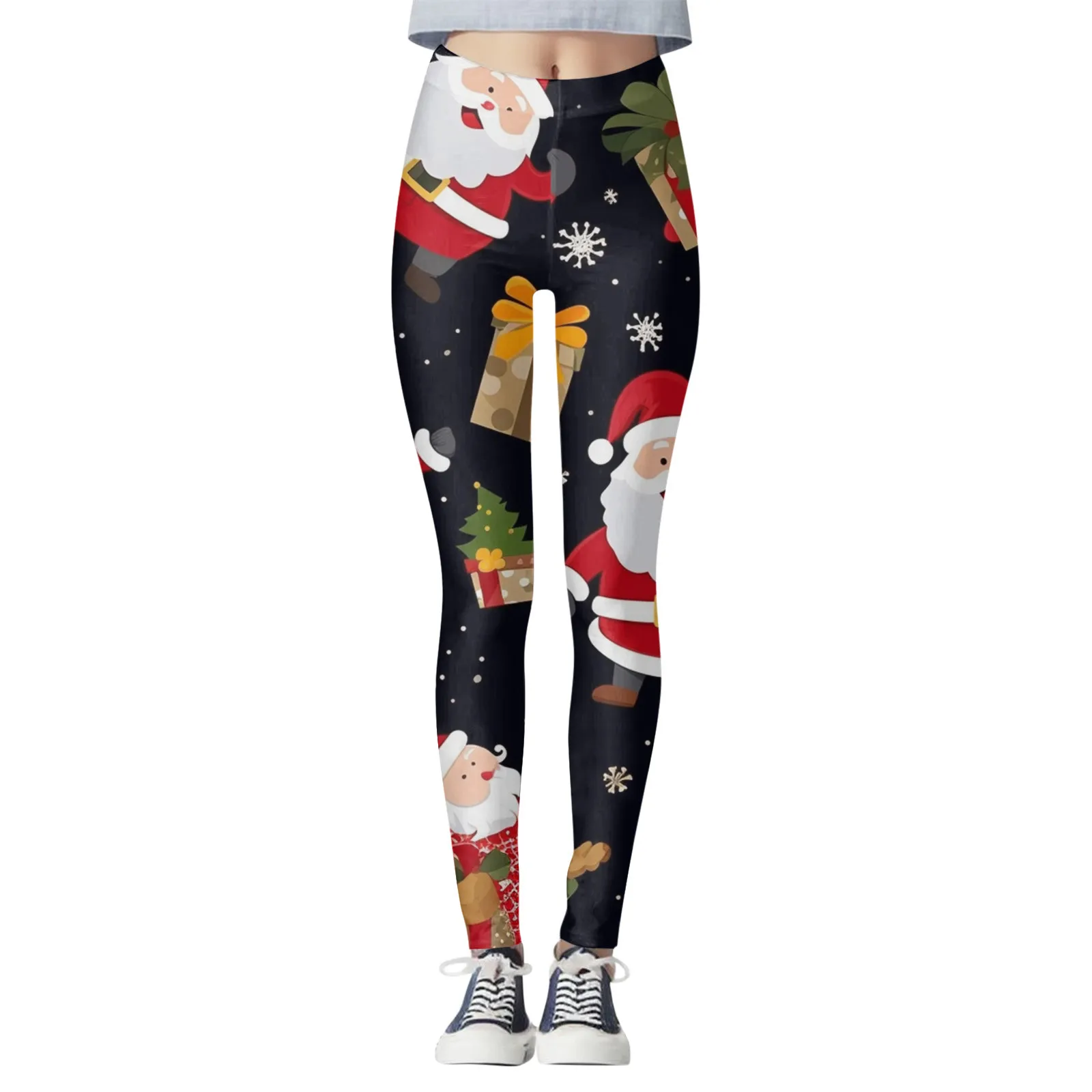 Women Christmas Tights Leggings Control Sport Leggings Santa Claus Snowman Print High Waist Leggings Xmas Fitness Trousers Pants